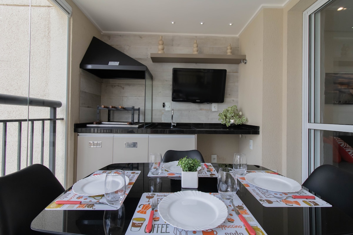 A acomodação perfeita para quem busca conforto, segurança, fácil acesso ao aeroporto GRU(9km), e na melhor localização da cidade. Possui: -cama queen -tv smart -ar condicionado(quente/frio) -wi-fi -mesa de escritório -sofá-cama -cortina black-out -varanda -cozinha equipada -roupas de cama/banho -infraestrutura completa no condomínio A piscina (Obras de 09/03 a 05/04/26) na cobertura com a vista + deslumbrante da cidade. Possui vaga de garagem inclusa/coberta. Não aceitamos PET.