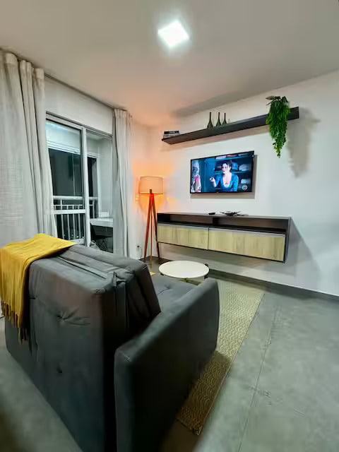Apartamento de 1 dorm novíssimo,muito aconchegante com: *Garagem, *FitnessCenter, *Piscina, *Churrasqueira , *Portaria e Segurança 24 hs . O Apartamento fica no bairro mais famoso e badalado de Guarulhos. Conta com Diversas opções gastronômicas e de entretenimento no espaço do complexo . Está localizado a apenas 200m do verdejante Bosque Maia e a 9km do Aeroporto de Guarulhos. Nosso espaço possui 1 cama de casal confortável, Sofá na sala e oferecemos Ar Condicionado,TVs, wifi , ethernet.