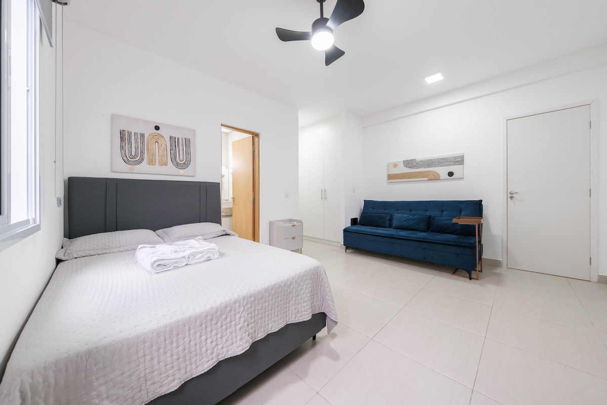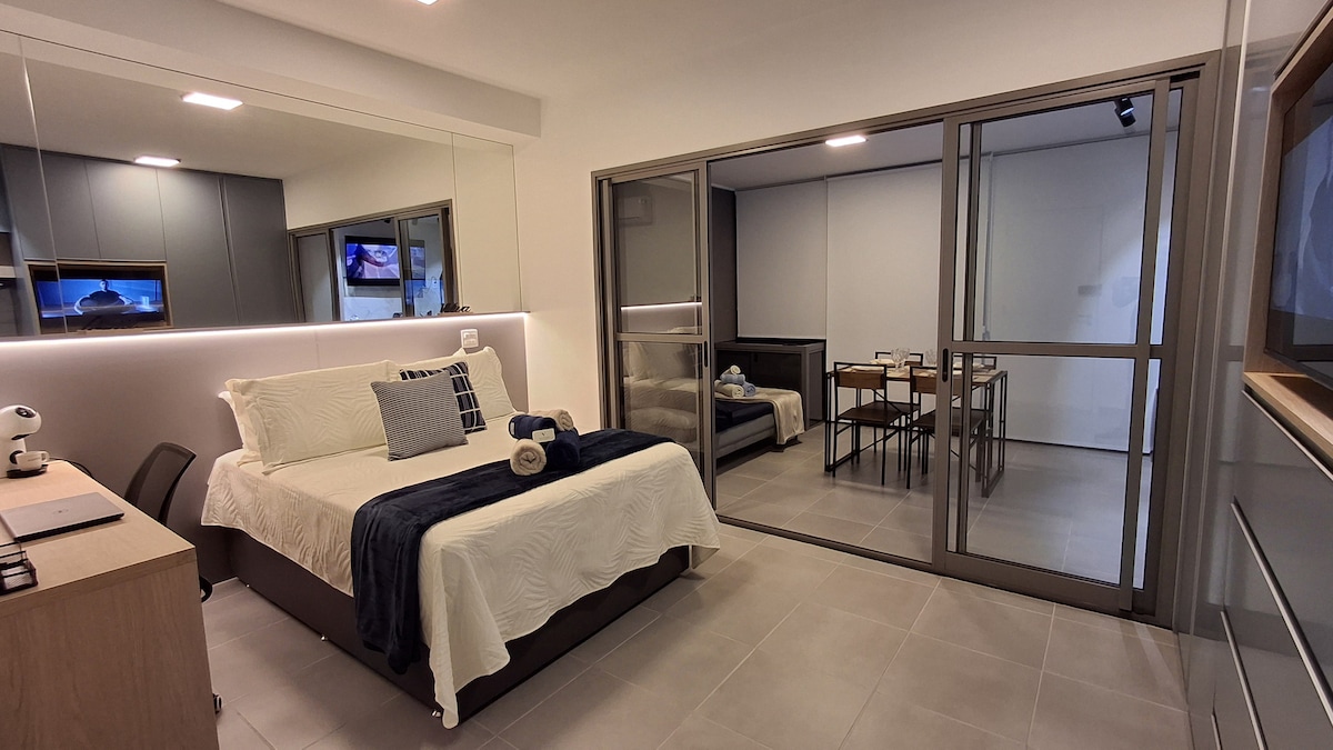 Estúdio moderno e aconchegante, aproximadamente 10 minutos do Aeroporto de Guarulhos. Ideal para viagens de trabalho ou lazer. Oferece Wi-Fi rápido, cozinha equipada, varanda e ar-condicionado, acomodando confortavelmente até 5 pessoas com uma cama de casal, uma cama de solteiro e um sofá-cama. Localização estratégica, próxima a mercados, farmácias e restaurantes. Perfeito para descanso, conexão e estadias rápidas. Reserve agora e sinta-se em casa!