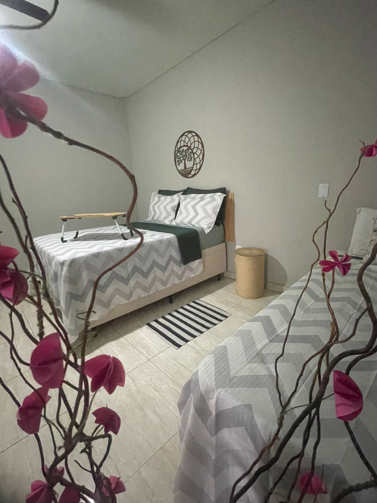 Bem-vindo ao nosso moderno e aconchegante apartamento, próximo ao aeroporto e ideal para viajantes, casais ou quem está a trabalho. Com decoração clean, Uma cama casal e uma solteiro confortável, cozinha completa, Wi-Fi rápido, ventilador e uma área exclusiva para pets, tudo foi pensado para garantir uma estadia agradável. Estamos à disposição para tornar sua experiência a melhor possível. Sinta-se em casa!