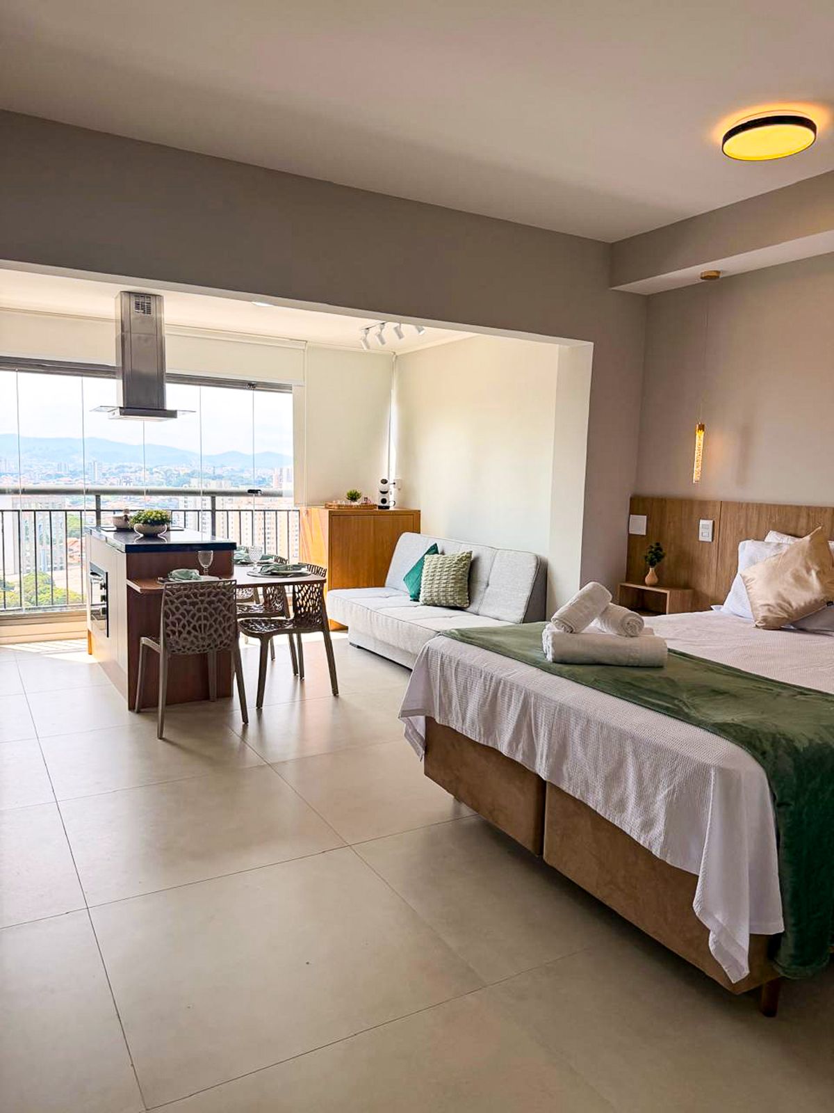 Studio Essenza Maia - Conforto Refinado Este apartamento de alto padrão está localizado no renomado condomínio Cidade Maia, um dos melhores de Guarulhos. Totalmente planejado para atender às necessidades dos hóspedes, o espaço conta com home office, cozinha completa, quarto equipado e banheiro moderno. Ideal para quem busca praticidade e conforto com um toque de sofisticação.