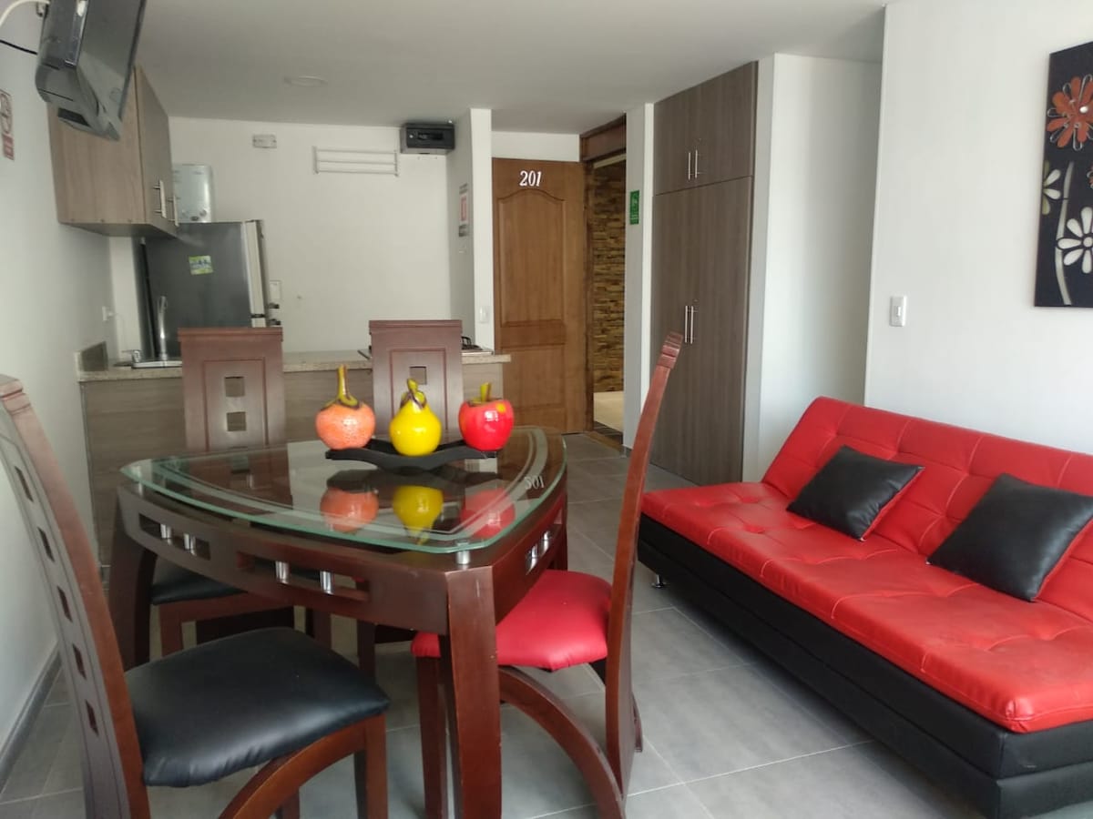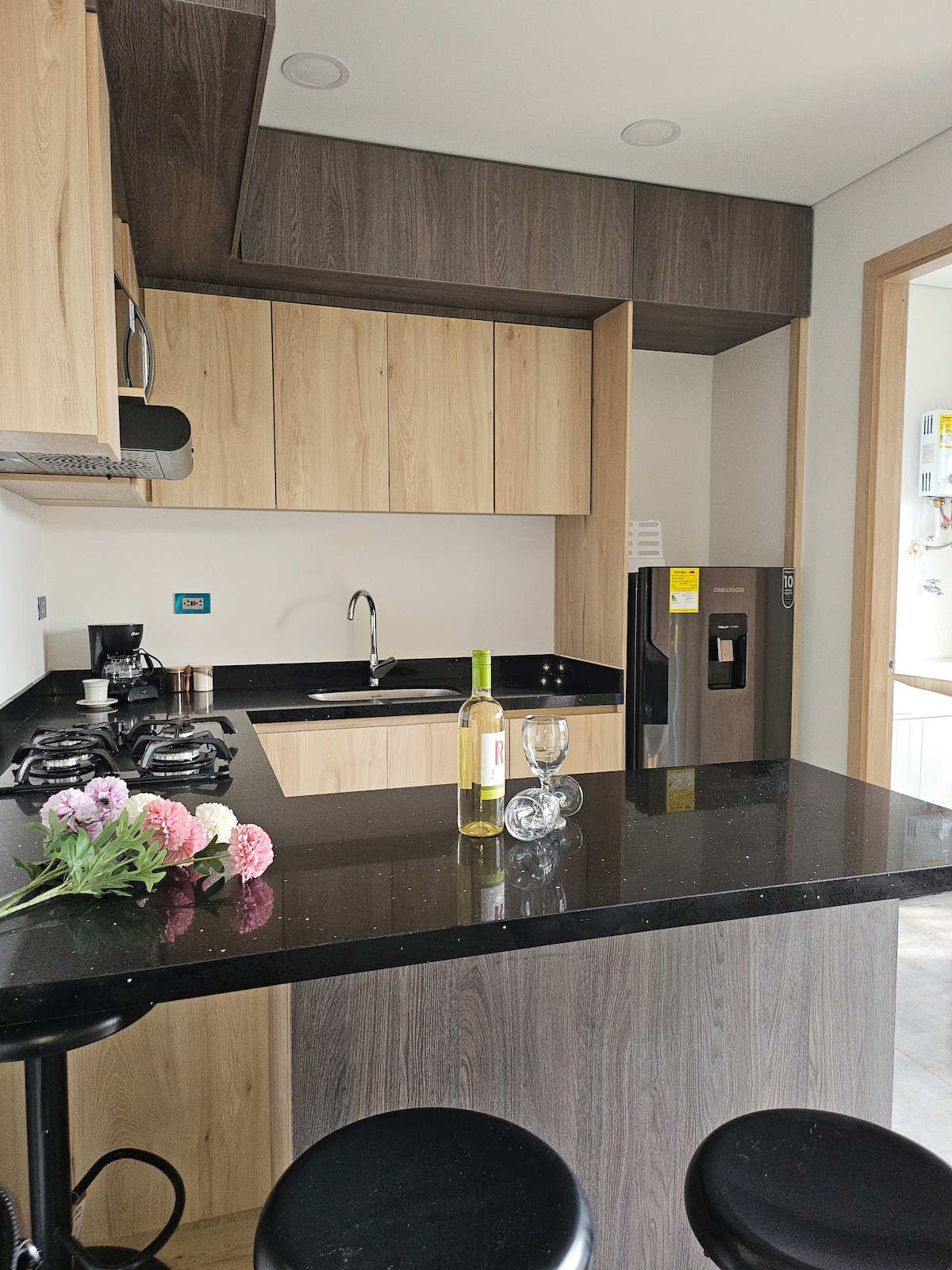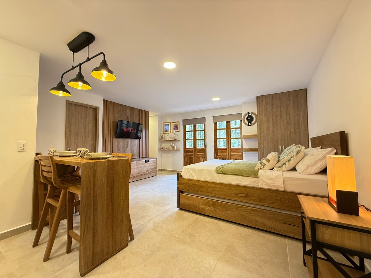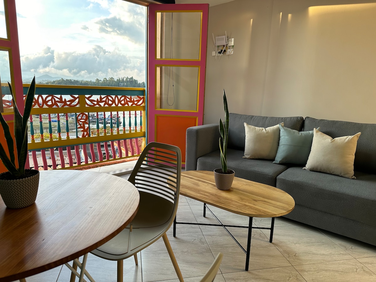 BREAKFAST INCLUDED. 1 bedroom 1 bathroom luxury apartment in Guatape located a block from the main square. Large fully-equipped kitchen with everything you may need for a short or long stay, incl. basic cooking condiments. We offer modern amenities while still providing a cozy atmosphere. Our aim is to offer you hotel comfort with the convenience of a home.