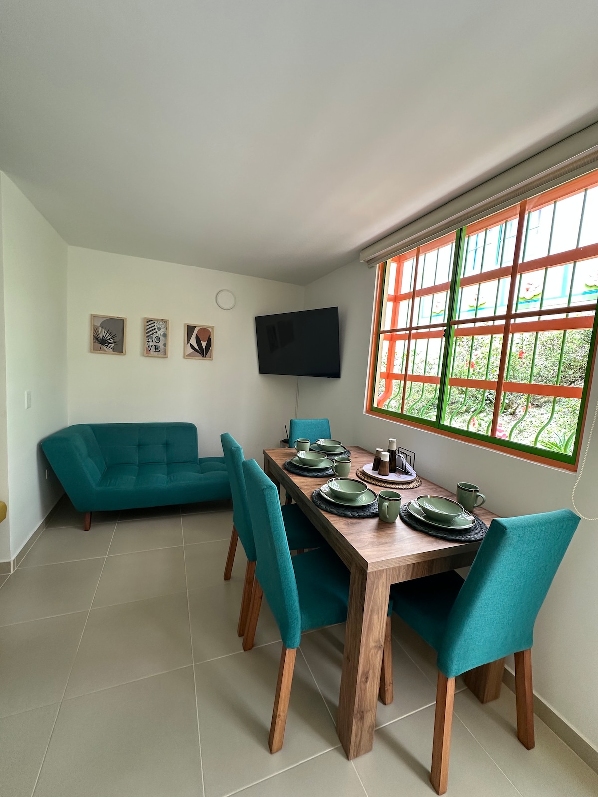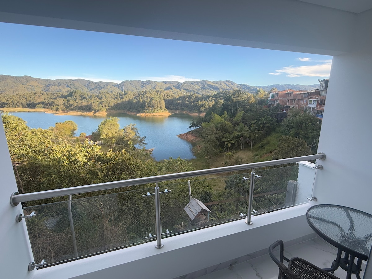Apartamento ubicado en una excelente zona de Guatapé, a pocos pasos de la represa, la cual se puede admirar desde su acogedor balcón. Cuenta con dos habitaciones: la principal equipada con una cómoda cama queen y la habitación de huéspedes con una cama doble (full). En el salón comedor encontrarás un sofá cama. La cocina está completamente equipada Además, el apartamento ofrece TV con acceso a Netflix e internet de alta velocidad con Wi-Fi permanente para una estancia cómoda y entretenida.