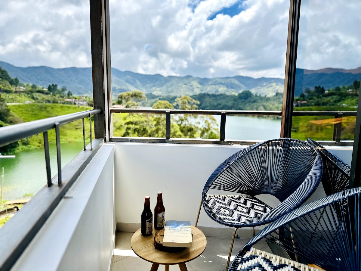 Escape to tranquility in this serene mountain hideaway overlooking the sparkling waters of one of Colombia's most beautiful lakes. Nestled in the lush hills of Guatapé, our cozy retreat offers breathtaking panoramic views, fresh mountain air, and the perfect setting to unwind and recharge. Wake up to birdsong and misty sunrises, sip your morning coffee on the terrace, and spend your days exploring the vibrant town of Guatapé or simply relaxing in the peaceful embrace of nature.