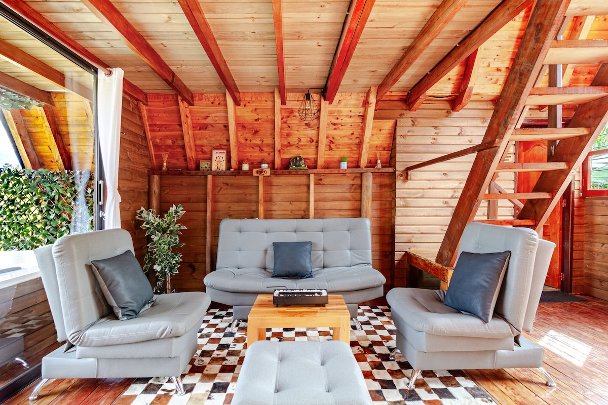Cabaña acogedora con una vista increíblemente indescriptible. Tienes acceso a la represa, al muelle, jacuzzi, kayak y mucho más. Algunos de nuestros servicios tienen un valor adicional. Puedes nadar, caminar por senderos ecológicos, disfrutar del bosque nativo y de la quebrada, escuchar los pájaros cantar en la madrugada y sentir una paz que te llena el alma, al mismo tiempo que emprendes la aventura de reconectarte contigo y con la naturaleza en este pedazo de paraíso.