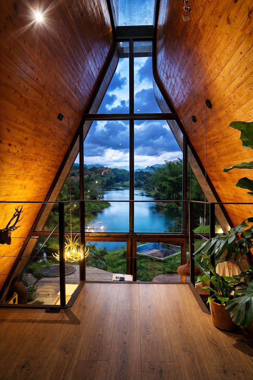 * The lake levels are back & the docks are floating! * Experience the awe-inspiring Arc House, an architecturally designed gem on a private bay, just 10 minutes from Guatape. Glass walls, 20-foot ceilings, and panoramic nature views make it truly unique. The house features 2 queen bedrooms, ensuite bathrooms, balconies, and a sofa in the living area to accommodate a total of 6 people. The high-quality kitchen is a chef's dream, complemented by a dining table for 6 and a lake-view balcony.