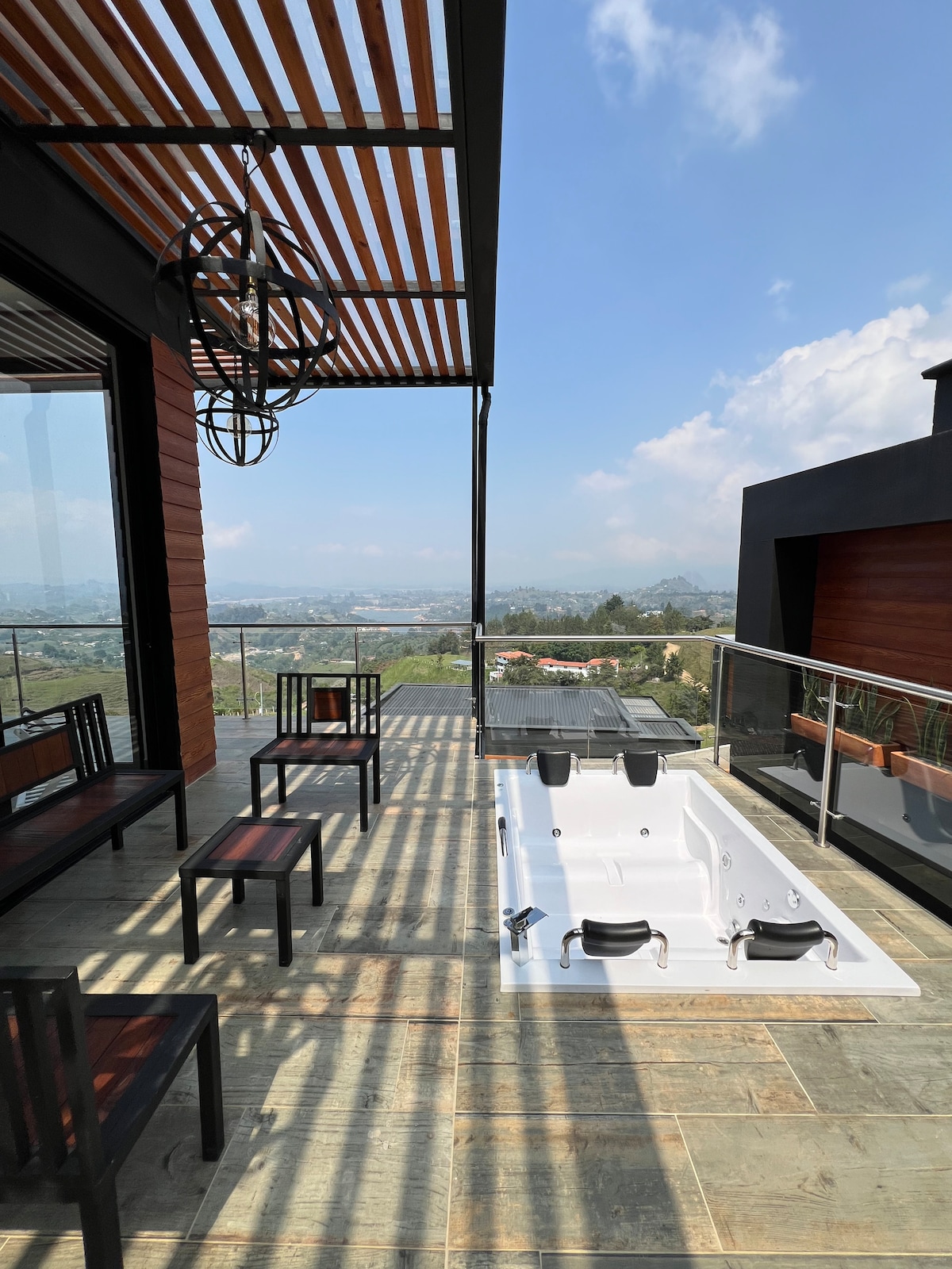 FORESTA is a modern cabin created with love for you to have an unforgettable stay in the middle of nature, with total comfort. Enjoy the privileged views from the deck, chill out in the jacuzzi, watch the dozens of birds that visit us or have a chat by the fireplace in the living room. FORESTA is a great launchpad to explore Guatape, climb the rock and do kayaking, jet-ski, wakeboard, sailing, paraglading, horseback riding, hiking, getting a helicopter ride or having an ATV tour. You choose!