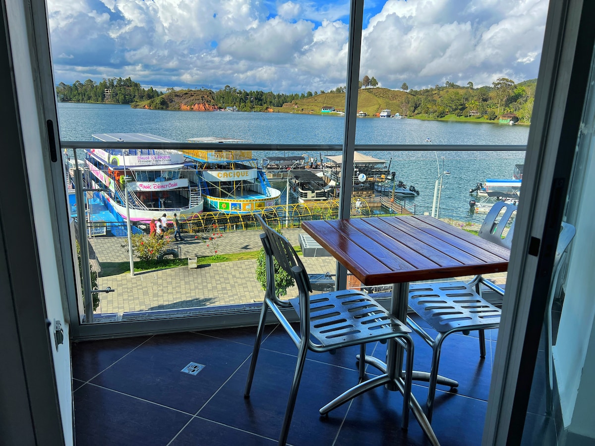 Hotel Portobelo, la mejor ubicación en Guatapé Ubicado frente al malecón, ofrecemos habitaciones temáticas con vista al embalse, diseñadas para tu comodidad. Cada espacio cuenta con una mesa para trabajar o compartir, ideal para quienes combinan descanso y productividad. A pocos pasos encontrarás restaurantes, tiendas y actividades acuáticas, además de la cercanía a la Piedra del Peñol. Reserva ahora y vive la mejor experiencia en Guatapé.