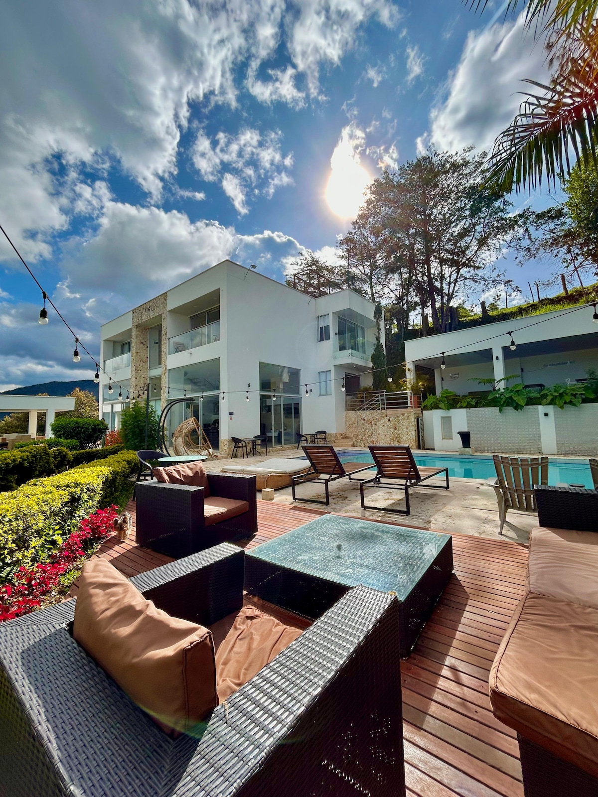 Experience luxury and nature at its finest in this home in El Peñol.Designed for comfort, exclusivity, and entertainment, this property offers direct lake access, jacuzzi, kayaks and a cozy fire pit for unforgettable nights. The house providing the perfect space for families and groups. We offer a soccer field, volleyball court, and gym. Private parking for up to 8 vehicles, perfect for anyone looking for a one-of-a-kind getaway in one of Colombia’s most beautiful destinations.