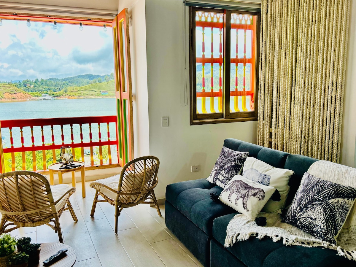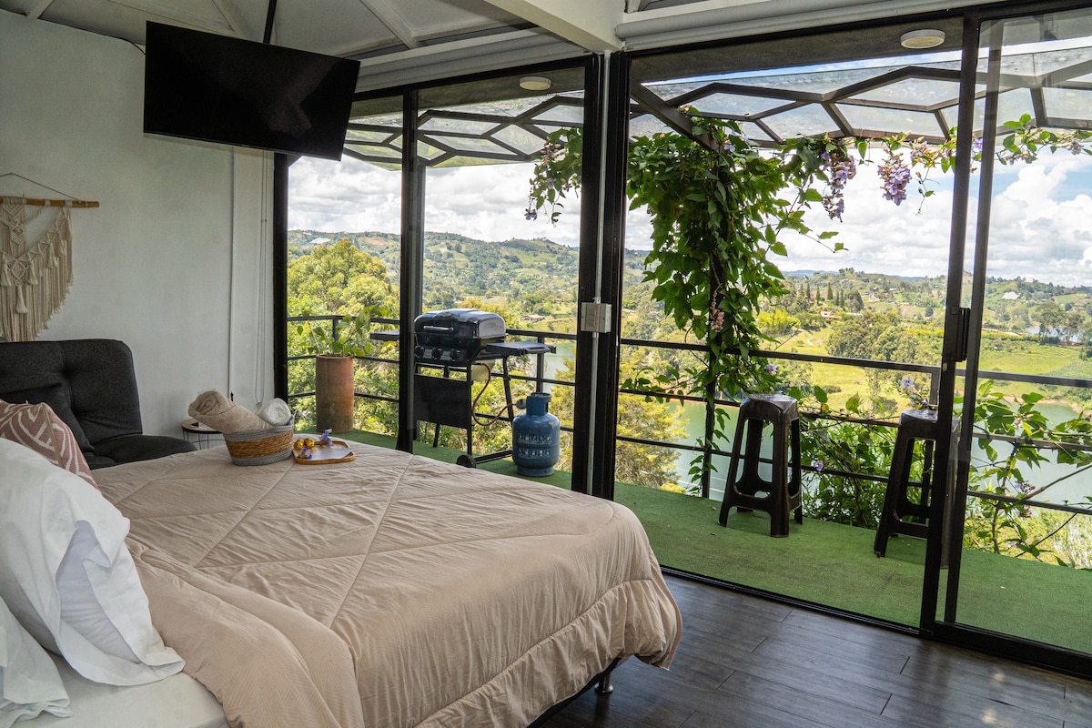 BEAUTIFUL CABIN ★3 minutes from Guatape and 4 minutes from La Piedra, private cabin on the edge of the reservoir, all deliveries of restaurants, liquors, supermarkets arrive, unique experiences, surfing boards included, full kitchen, mini fridge, TV with Netflix, live an experience with your partner, a space to rest, get out of the routine, connect with nature, unparalleled close-up view of the reservoir and La Piedra, you can enjoy the amenities of Guatapé and La Piedra