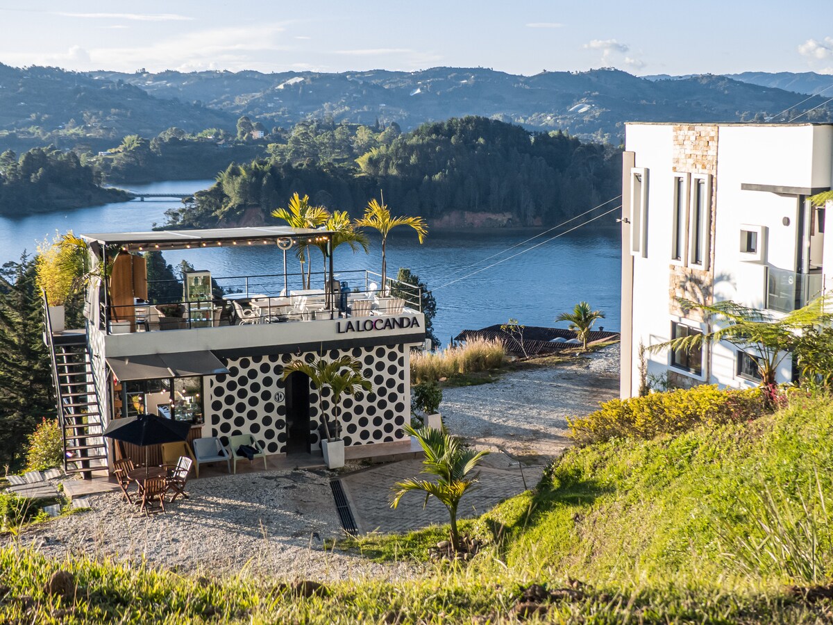 "Disfruta del encanto y la tranquilidad en nuestra tiny lake house en la mejor ubicación, un refugio perfecto 100% privado en medio de la naturaleza. Relájate en un jacuzzi de lujo mientras admiras vistas únicas a la represa y a la famosa Piedra del Peñol. Que además cuenta con una chimenea , y una cocina completamente equipada para todas tus necesidades culinarias un deck exterior, muelle. Perfecta para hasta 4 personas, es el lugar ideal para desconectar y crear recuerdos inolvidables."