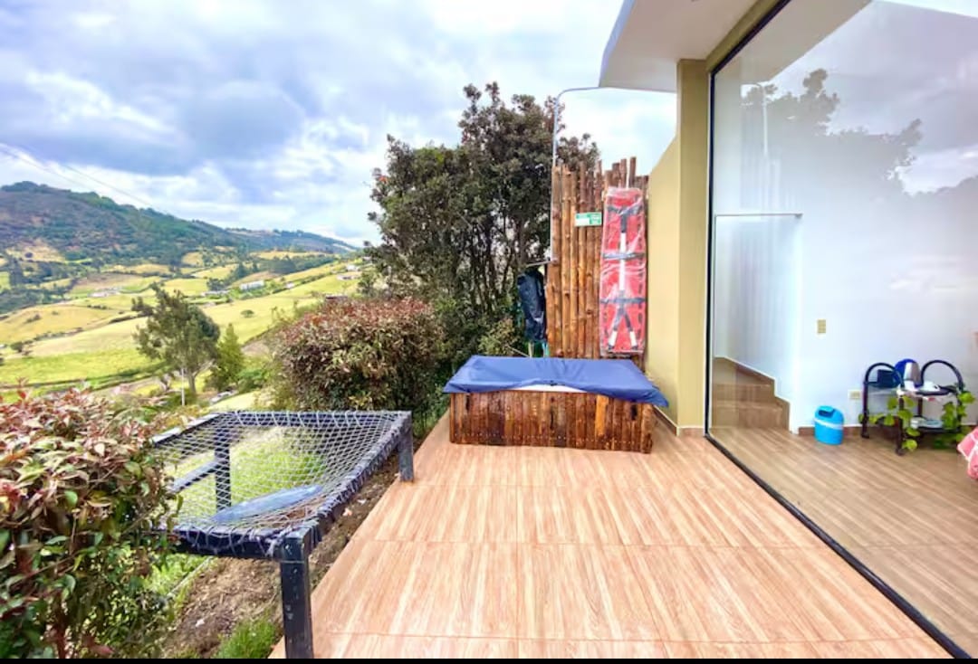Este lugar excepcional tiene su propio estilo. La mejor vista de la región; tranquilidad, excelente lugar para conectarse con la naturaleza, a 40 mnts de Bogotá📍 Cuenta con: piscina privada- jacuzzi- BBQ - personal de apoyo para servicios de comida - paseo en cuatrimoto al Páramo donde se pueden ver venados y osos de anteojos a 30 Minutos. ☀️ Perfecta para descansar con la familia o con amigos. Una experiencia inolvidable 🌿🌻🌞