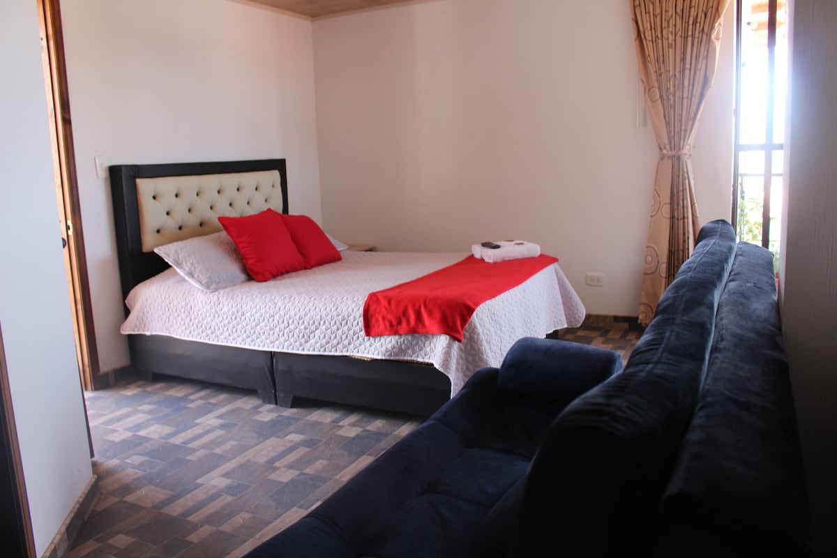 Bienvenido a Caminos del Dorado! Este acogedor apartamento en Guatavita ofrece un espacio perfecto para disfrutar tu estadía. Con una cocina integral, dos baños completos y tres habitaciones equipadas con camas cómodas y un sofá cama, tendrás todo lo necesario para sentirte como en casa. Vive un entorno tranquilo y excepcional, rodeado de impresionantes paisajes y arquitectura única. Además, tendrás estacionamiento gratuito justo al frente del apartamento para tu mayor comodidad y tranquilidad