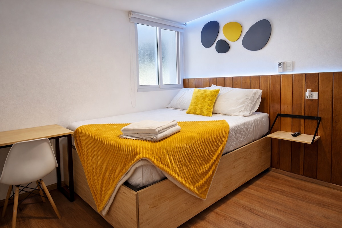 宽敞舒适的房间,配有加大双人床,位于米拉弗洛雷斯区