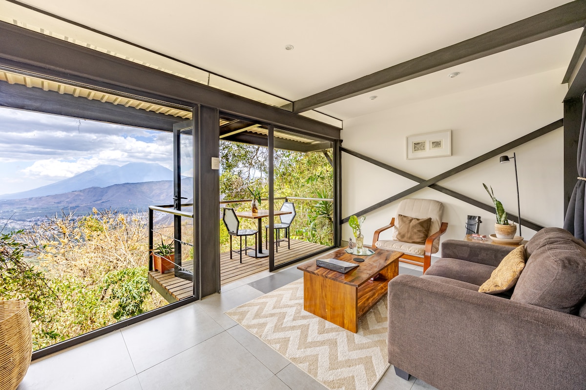 Perched above our private protected reserve, this luxury treetop cabin offers uninterrupted volcano panoramas from your private balcony. Here, every sunrise feels like a quiet celebration - birdsong replaces traffic, and nature becomes your closest neighbor. Stay in a spacious, design-forward home with full kitchenette, thoughtfully chosen furnishings, and deep peace - this is more than a room, it's a sanctuary above the forest.