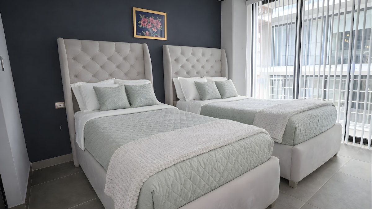 Apartamento diseñado para que te sientas en casa, ideal tanto para viajes de trabajo como para vacaciones en familia. El apartamento incluye: 2 dormitorios cómodos y bien iluminados, sala y comedor modernos, balcón privado con vista espectacular, cocina equipada, WiFi y 2 parqueo incluido. Piscina en el rooftop, gimnasio moderno. Se encuentra junto a algunas de las mejores clínicas de cirugía de la ciudad, ideal para estadías médicas. Perfecto para ejecutivos, familias y turistas.
