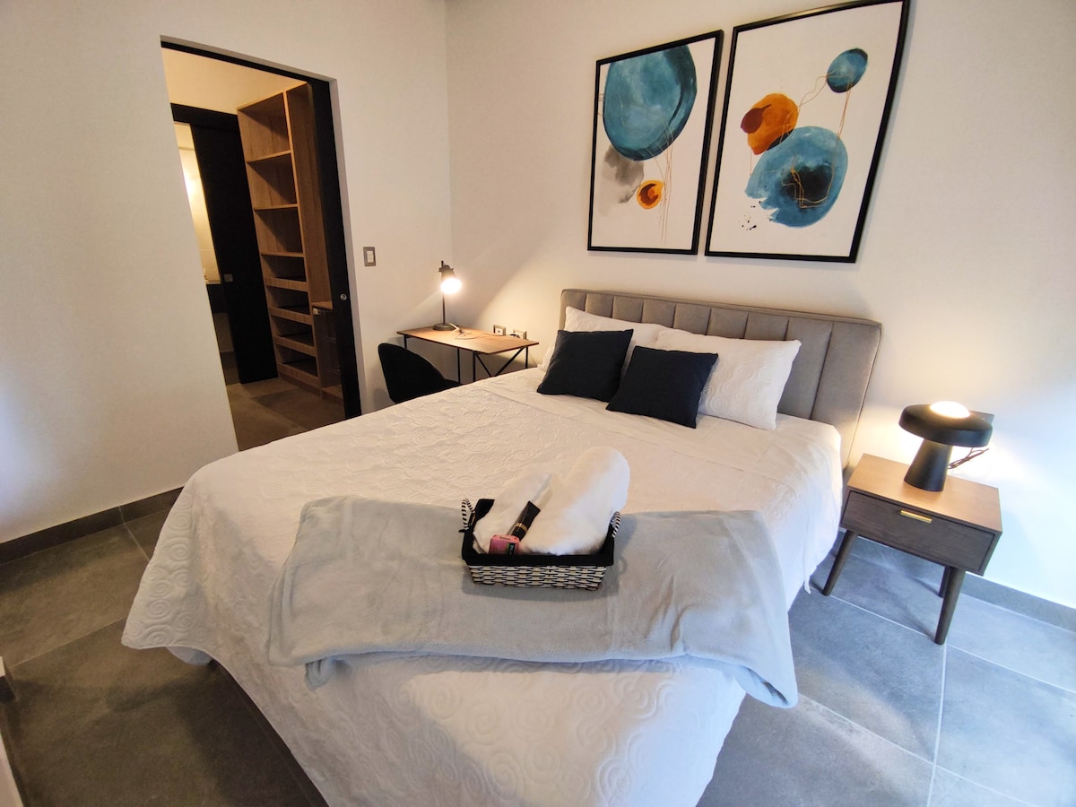 Our lovely apartment is located in one of the most exclusive areas of the city: Cayalá, Zona 16 (8 min. walking). We are close to different gastronomic experiences, tourist sites, shopping, supermarkets, the U.S. Embassy and we are only 15 minutes away from the city's center (by car). The space has a fully equipped kitchen; a sofa-bed; a high-speed Wi-Fi; a work space and a large walking closet. We're looking forward to your visit!