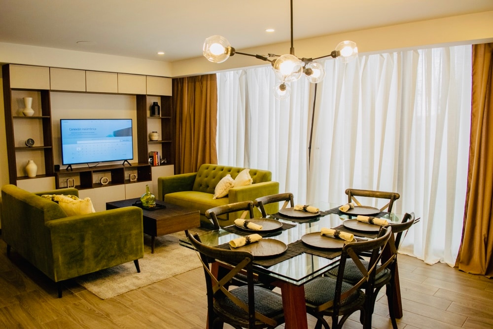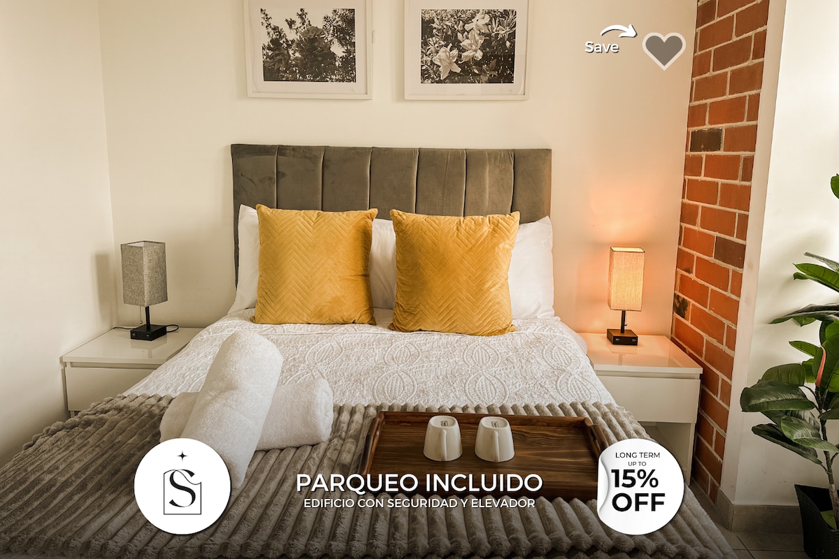 ★NO AIRBNB SERVICE FEE!!★ Exclusive benefit for our guests! El apartamento es totalmente nuevo y muy luminoso. Está amueblado, tiene un baño completo y la cocina está totalmente equipada con todos los utensilios necesarios. Puedes hacer uso de la piscina, gym y espacio de coworking que se encuentra dentro del edificio durante los horarios y conforme a las reglas del complejo. El cuarto cuenta con una cama Queen y TV con cable local y Netflix. Cuenta con estacionamiento dentro del edificio.