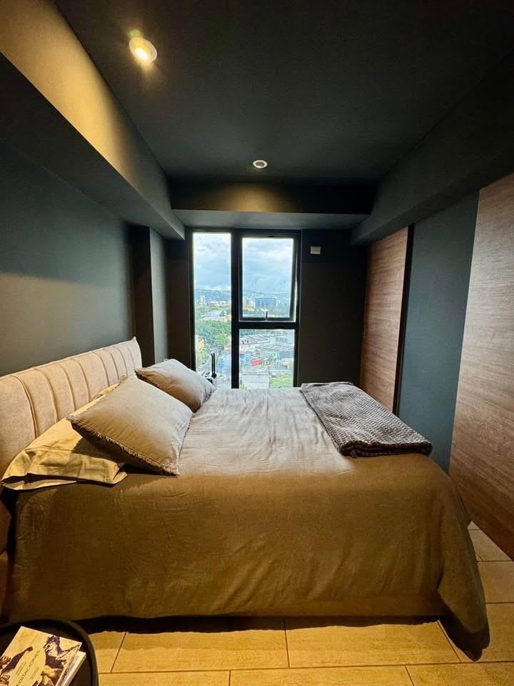 Apartamento modificado de 2 a 1 habitación para ofrecer grandes ambientes y una vista estupenda a la ciudad y los volcanes. Sus más de 85 m2 se conjugan con un equipamiento y decoración de primer nivel. Contamos con piscina climatizada a 31 C, gimnasio equipado, areas sociales en el piso 25 como un Fire Pit; asi como supermercado, salon de belleza y banco en el lobby. Ubicado en la zona hotelera de la ciudad o Zona Viva a pasos de los mejores hospitales, restaurantes y centro comerciales