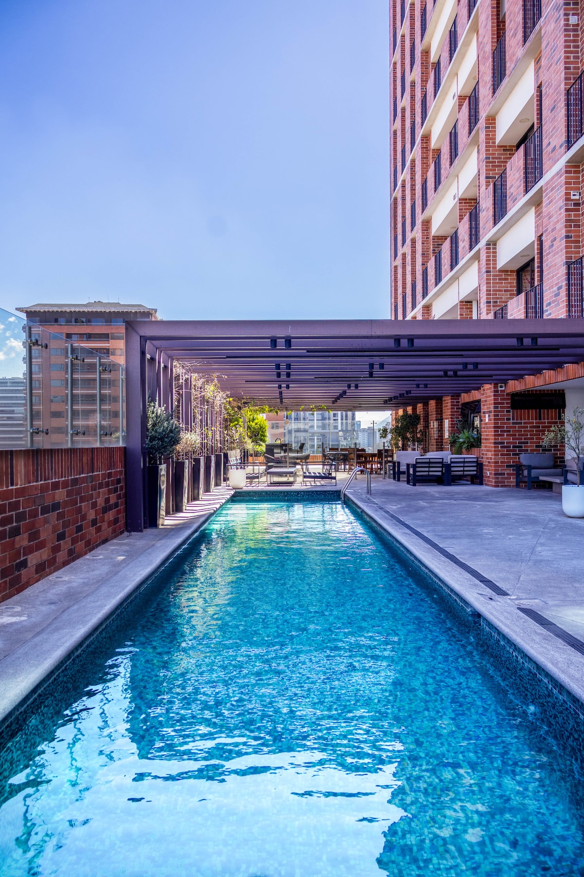 Moderno y acogedor en la mejor zona de la ciudad. Internet corporativo, business center, gimnasio y 2 terrazas con fire pits. Vistas espectaculares y cerca de restaurantes y supermercados. El apartamento no cuenta con parqueo, lo cual nos permite ofrecer precios más bajos. Puedes estacionar tu carro gratuitamente en la calle o utilizar estacionamientos privados cercanos. Por requisito del edificio, se te pedirá identificación tuya y de tu(s) acompañante(s) para gestionar tu ingreso.