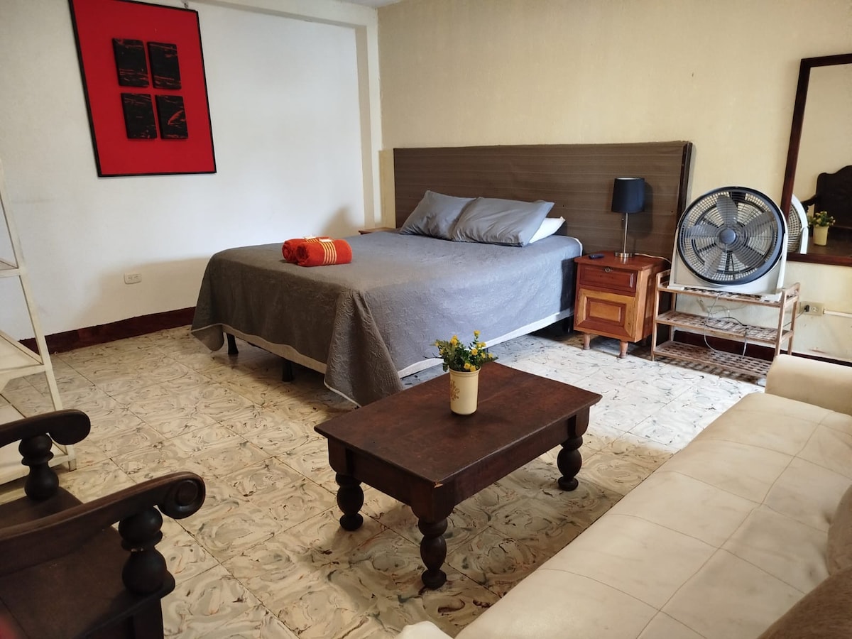 CON PARQUEO ADENTRO DE LAS INSTALACIONES y a pocos minutos de las principales zonas de la capital. Se hospedará en este seguro y cómodo alojamiento, rodeado de un ambiente tranquilo y sobre todo familiar. Descanse en una cómoda cama doble, tome una ducha caliente, relájese y vea su serie favorita, tómese una taza de café o conéctese vía internet... Todos los días nos preparamos de la mejor manera para que en su estadía pueda sentirse como en casa.