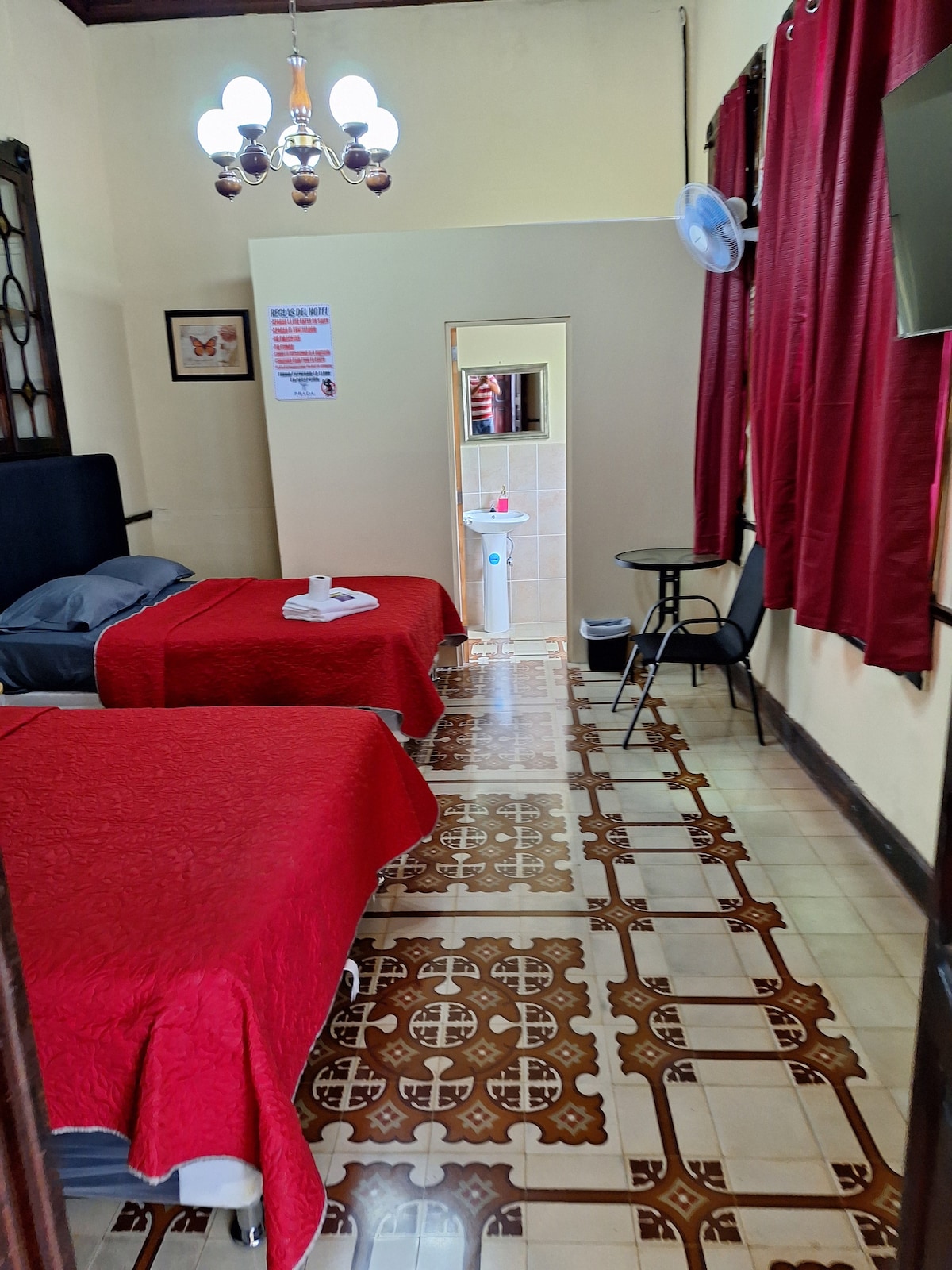 Habitación moderna en Hotel con baño privado cerca del centro histórico en zona 1. La habitación cuenta con wifi, Smart TV, closet, baño privado, shampoo y ventilador. La habitación se encuentra en un hotel con recepción 24/7. El hotel esta caminando del centro histórico, iglesia la merced y Cerrito del Carmen. Hay parqueo cerca por un costo adicional. El hotel cuenta con terraza con buena vista y restaurante