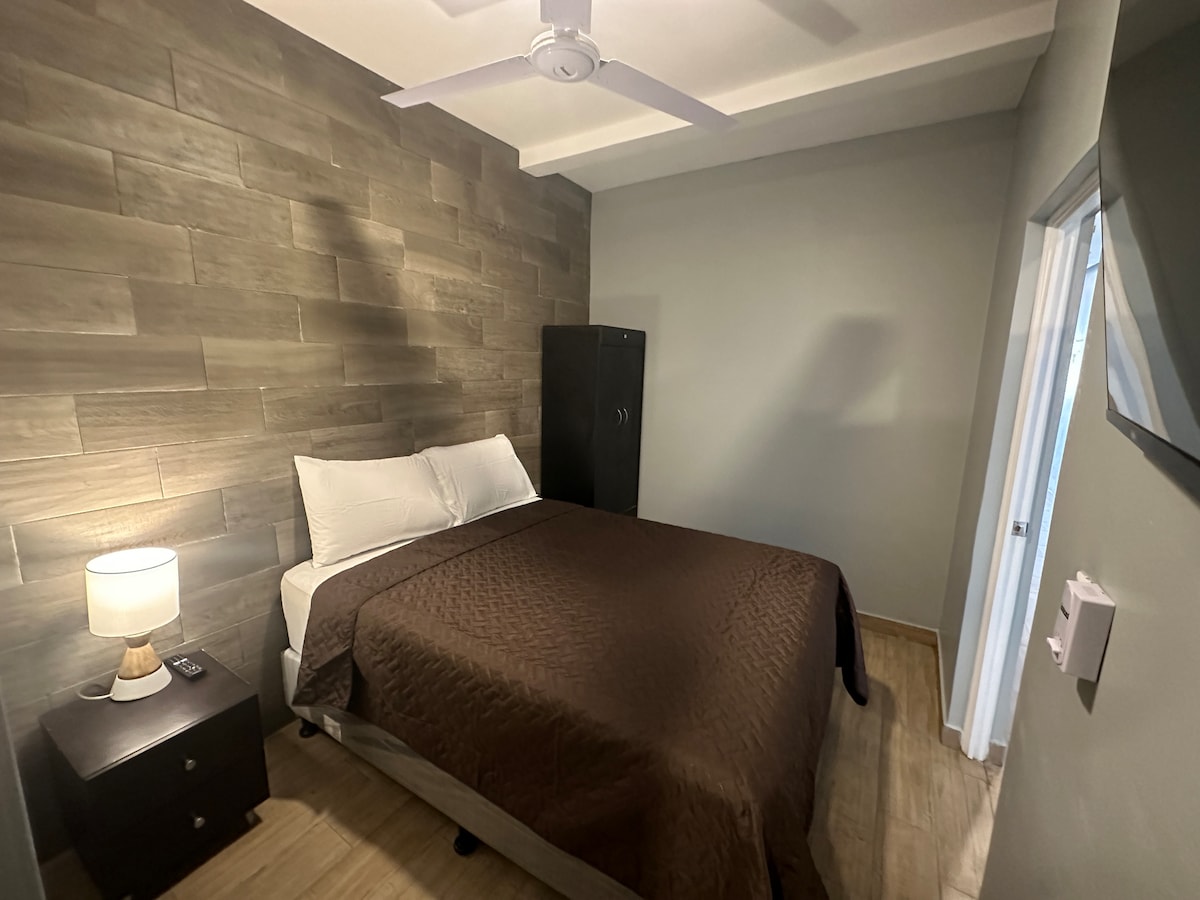 Habitación moderna y económica con baño privado cerca del centro histórico en la zona 1. La habitación se encuentra en un hotel que cuenta y con recepción 24/7. La habitación cuenta con smart Tv, closet, ventilador y wifi de alta velocidad