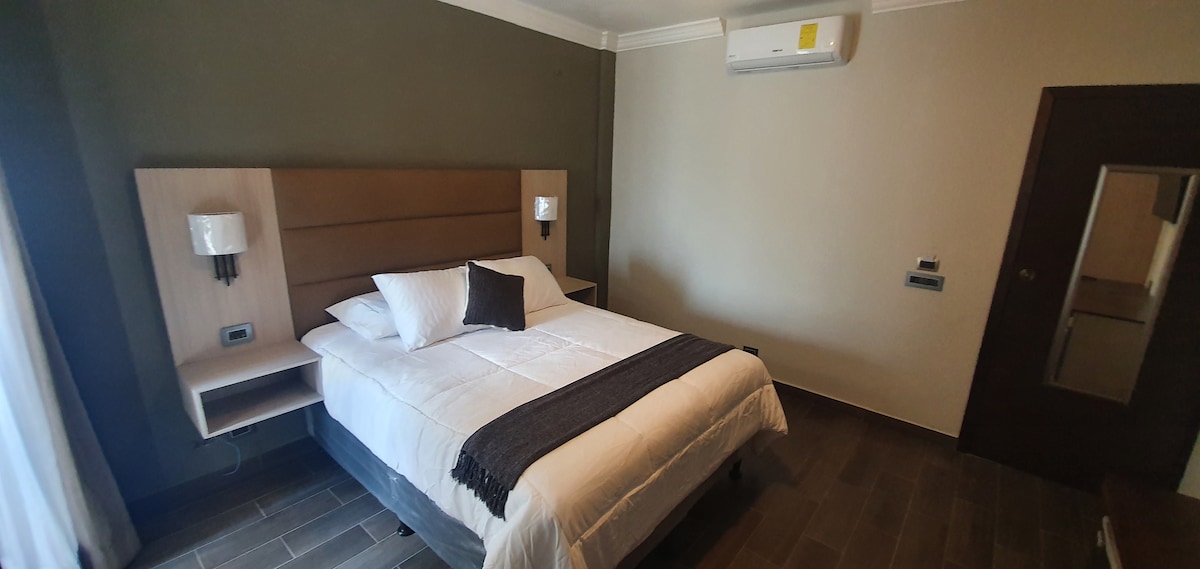 Este espacio con estilo es el lugar perfecto para tu estadía. Con habitaciones cómodas y encantadoras. Estacionamiento gratuito. Y lo mejor de todo, a unos pasos de el Aeropuerto Internacional La Aurora 2 Camas Matrimoniales Super Deluxe