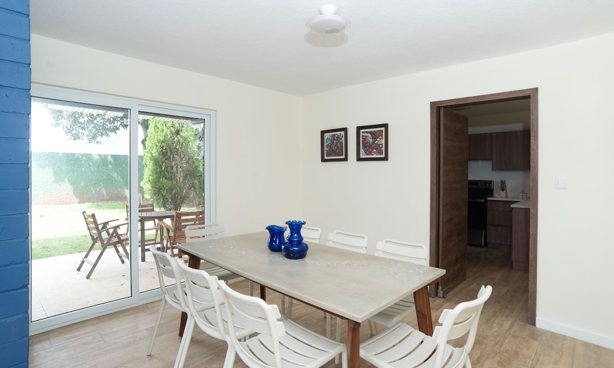Te presentamos nuestra amplia y moderna casa cercana a Cayala y a la Embajada de USA, pet friendly con ubicación estratégica a tan solo 8 minutos de ciudad Cayalá y del modernismo de zona 16. Nuestro alojamiento cuenta con 4 habitaciones con capacidad para 9 personas, 2 salas familiares, 3.5 baños, 1 cocina completa y equipada, un comedor elegante, 2 terrazas, jardín y parqueo para 2 vehículos en garaje y 1 exterior. Dentro del condominio también hay un parque boscoso para niños y mascotas.