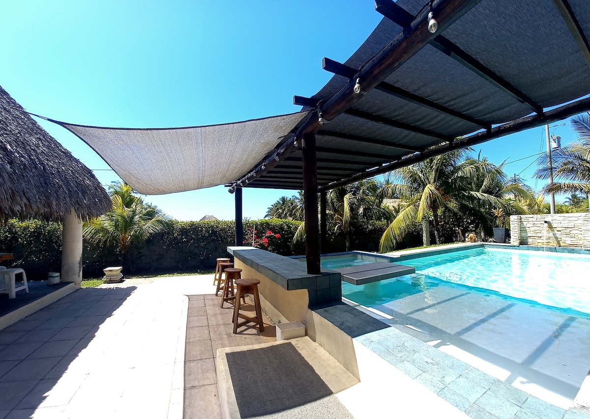 Lovely, comfortable house in quiet and safe place. Carefully decorated. The house was designed for confort, it was built for my family not for rent that makes the diference. Ranch with hammocks and living room. Sheltered table in the swimmig pool and gargoyle. FIRE PIT. Sand amateur volley ball court. Carefully maintained garden. Fire pit in the garden. Outside bathroom at pool area. Tv/cable. Wifi. a/c in 3 bedrooms. just 100 mtrs from the beach. you can feel the ocean. Pet friendly.