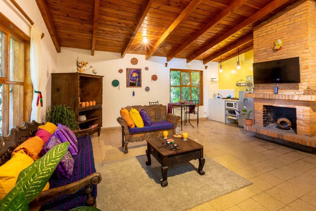 Welcome to Santiago, a tranquil town nestled along the southwest shore of Lake Atitlán. This stone cottage is set in a lush, tropical garden with Volcán San Pedro rising up directly across the lake. Have your morning coffee on the front patio or relax in the hammock. Have a barbecue or make a fire in the outdoor stone oven/fireplace or relax at sunset on the brand new mirador. Make use of the shared community facilities including a swimming pool, jacuzzi, sauna, and access to kayaks and canoes.