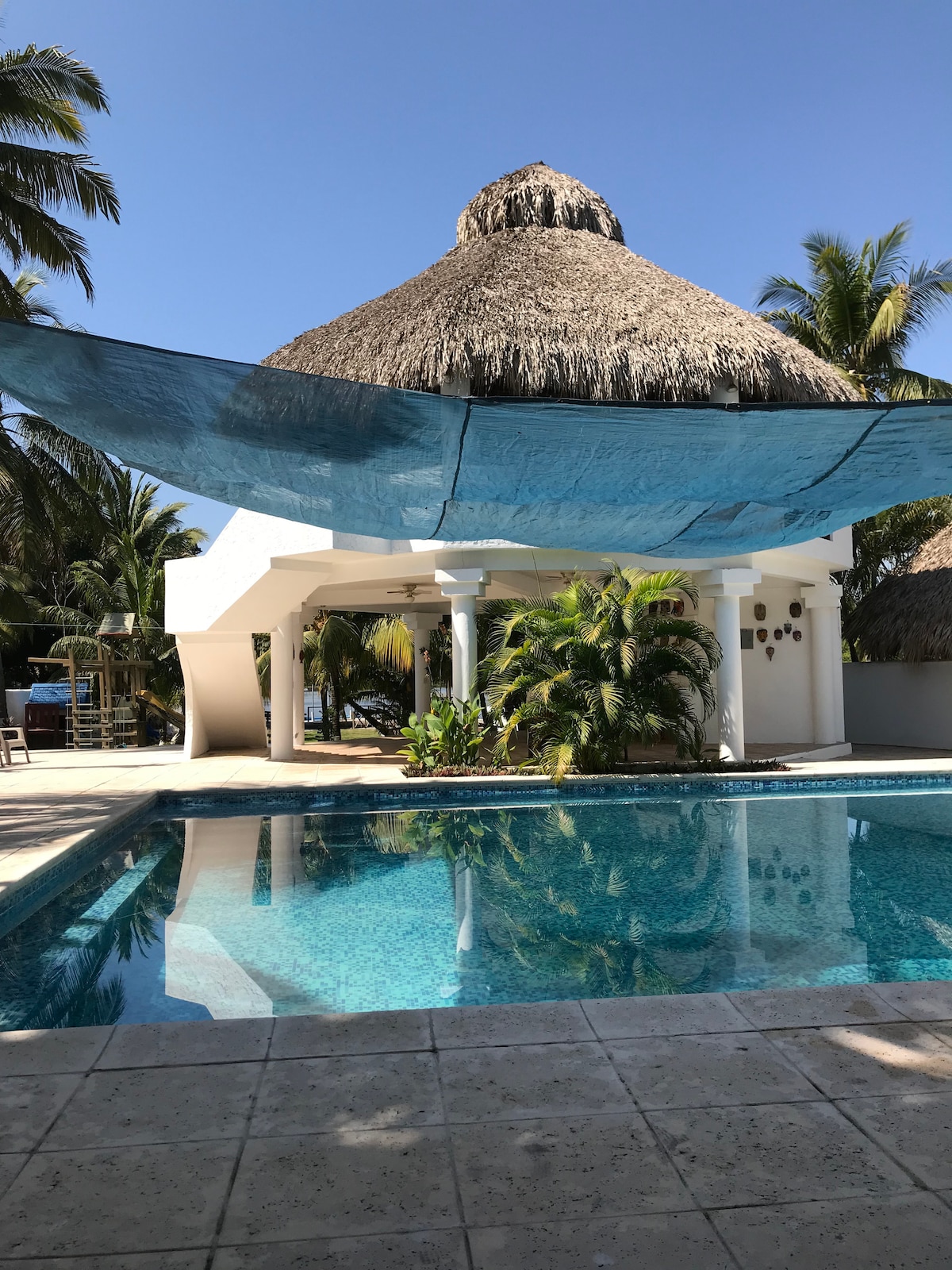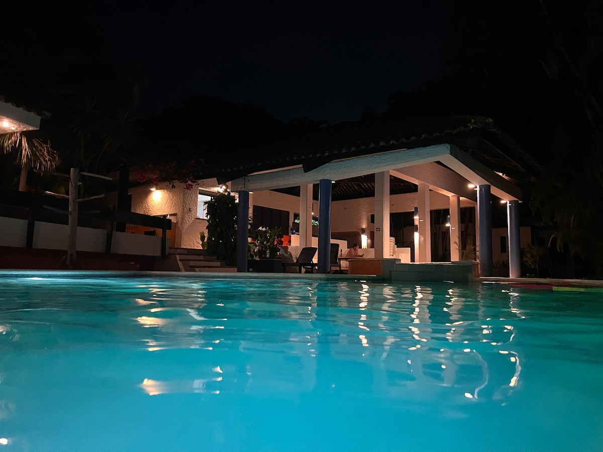 Casa de Playa frente al Mar, completamente privada. La casa cuenta con agua dulce se hizo cisterna para el efecto, y la piscina es de agua salada. Cocina completamente equipada con A/C. Dos habitaciones con A/C y baño privado cada una. Rancho de descanso con hamacas, salida peatonal a la playa, ideal para descansar, acompañado de amigos y familiares, Tranquilo y acogedor. Pensado para la privacidad de nuestros huéspedes. 3 parqueos privados adentro de la propiedad.