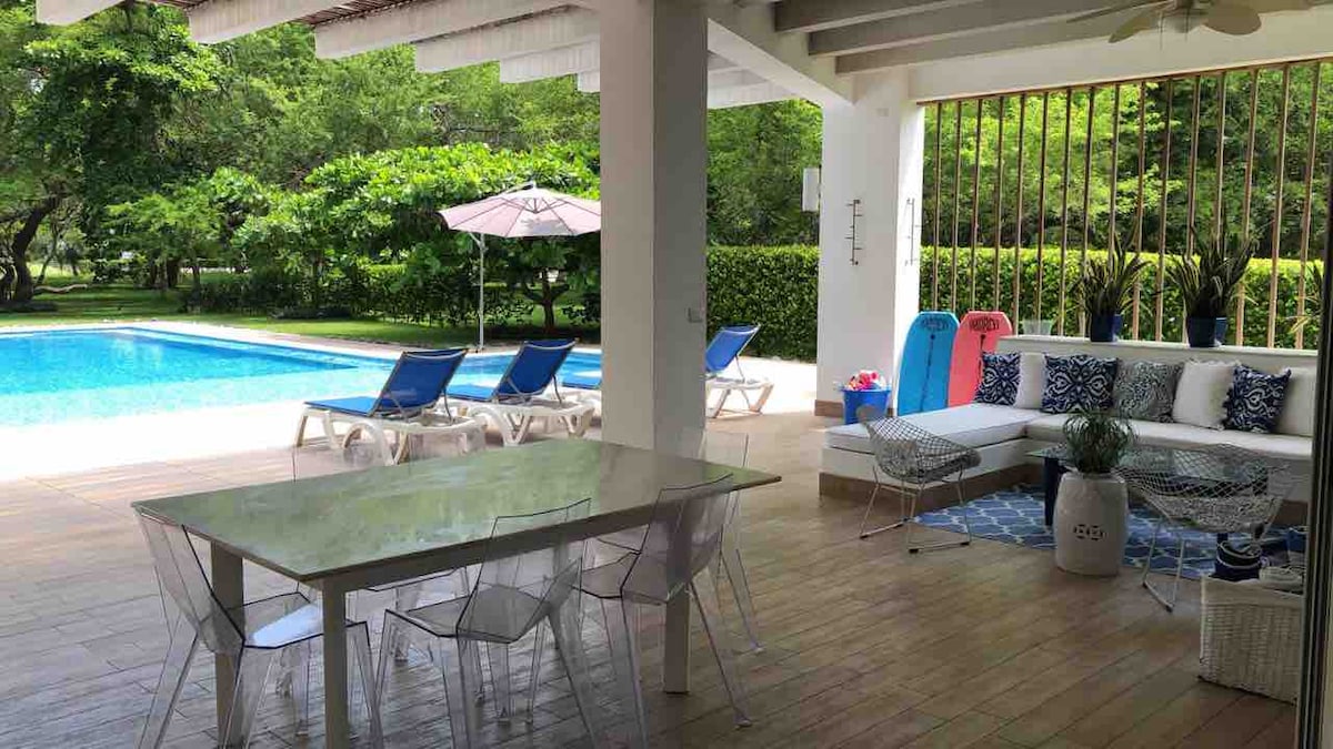 Relájate cómodos espacios remodelado totalmente, linda piscina y área verde casa totalmente equipada y amueblada para tengas un descanso y disfrutes al máximo tu estadía. Habitaciones (3) con aire acondicionado / cortinas blackout y baños privados. Área de juegos tenis de mesa y billar Área de rancho con tv con cable claro y sky Área de Sala con TV Sky / cable claro / Wifi/Churrasquera a gas áreas recreativas canchas volleyball/basketball y juegos para niños/ arenero