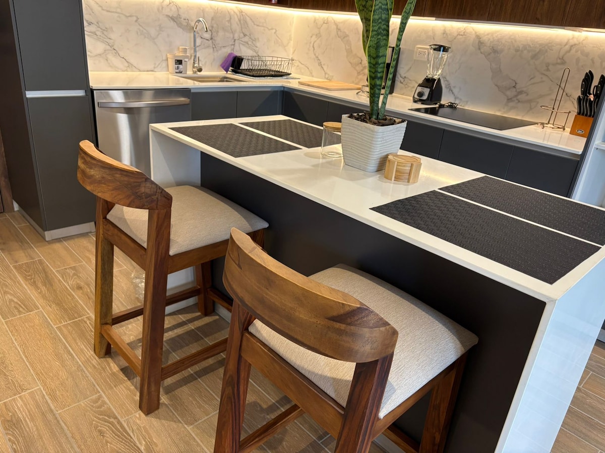 Este apartamento de dos dormitorios es moderno y acogedor, ideal para estancias cortas o largas. Tiene unas vistas espectaculares y está en el corazón de la zona diez, muy cerca de hospitales, centros comerciales y restaurantes para que puedas llegar caminando si así lo deseas. Tiene aire acondicionado en los dormitorios para que descanses y te sientas fresco siempre.