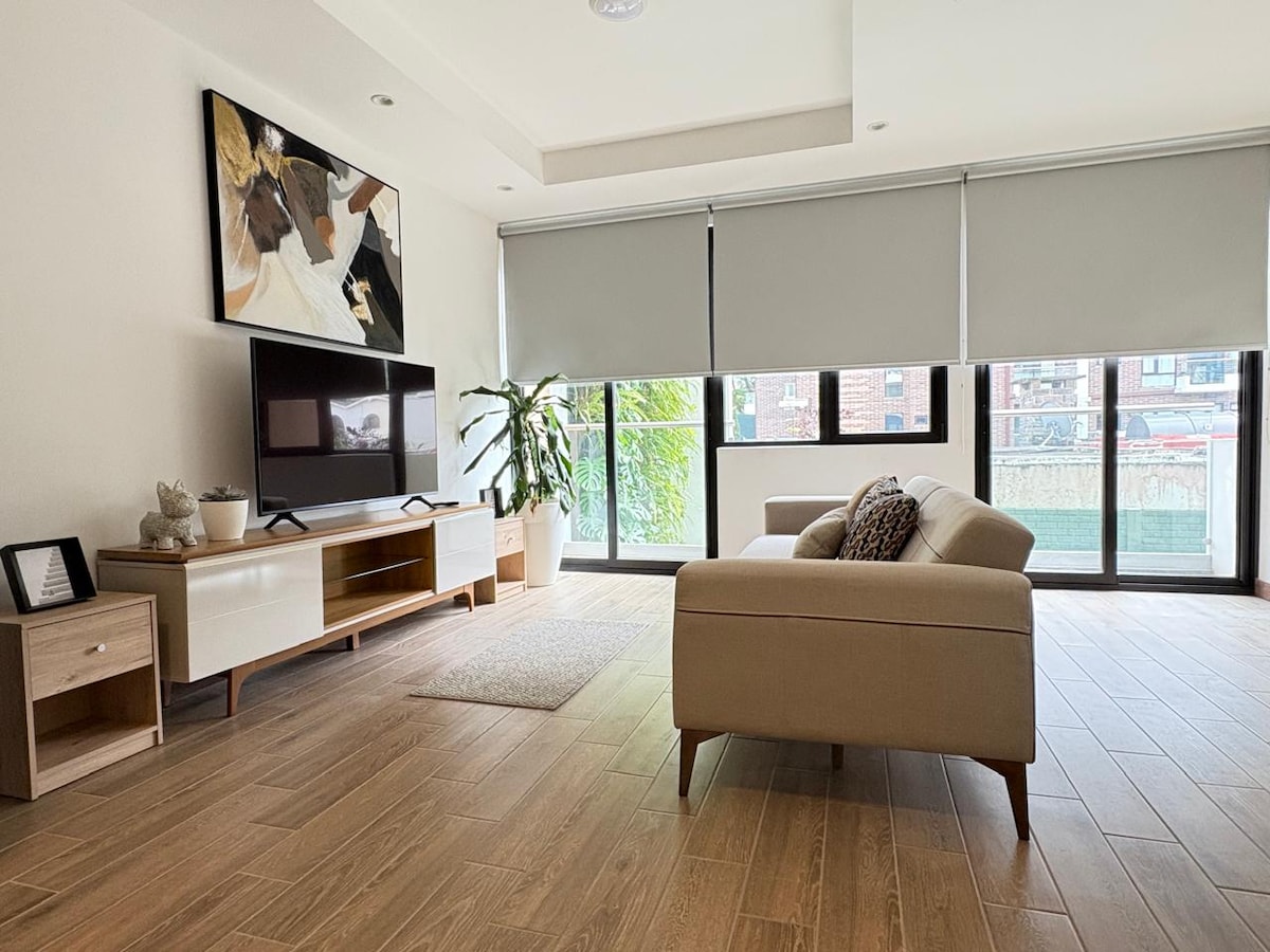 Lindo apartamento acogedor, con terraza e increíble vista a la ciudad, muy céntrico, rodeado de creativos cafés, lleno de arte a sus alrededores y una amena comunidad urbana. Completamente equipado. Un pequeño lugar privado, cálido y tranquilo. El edificio no cuenta con area de Parqueo pero hay seguras opciones cercanas.
