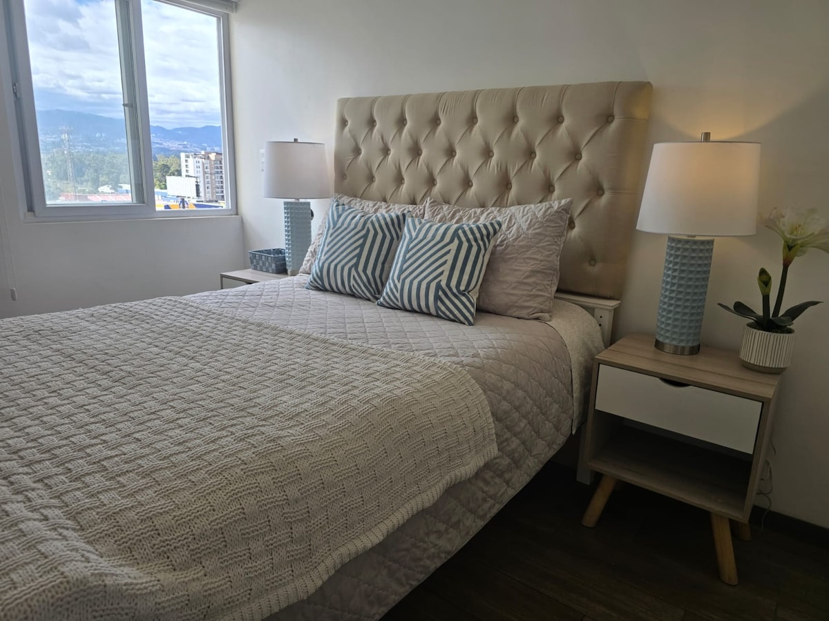 Feel the experience of staying in a brand new loft apartment in the beautiful country of Guatemala. Our apartment with modern, elegant touches that accompany an unparalleled view, provide calm and tranquility in one of the most exclusive areas of our country. You will have the opportunity to stay near shopping centers, restaurants, the hotel zone and a few minutes from the international airport.
