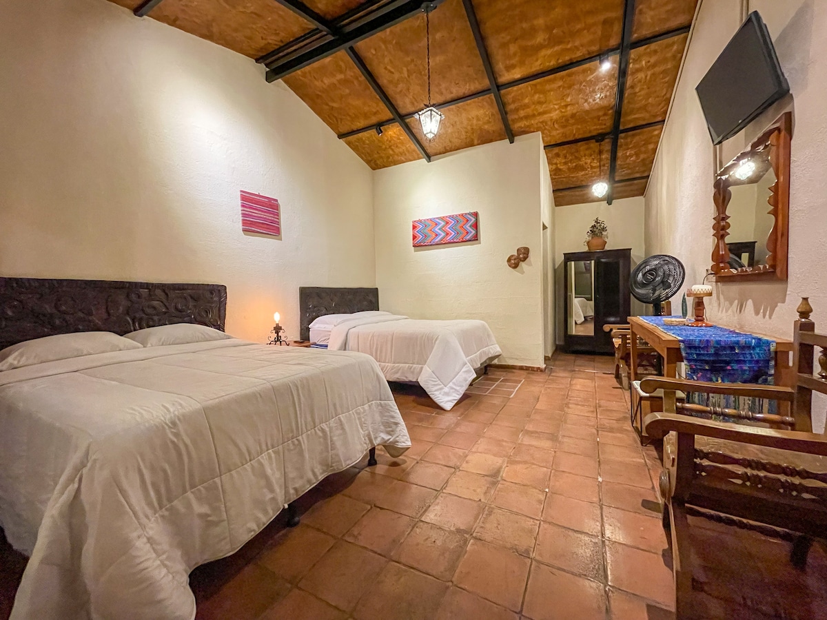 Our charming boutique hotel is nestled in the most beautiful street in Antigua. It's walking distance from all main attractions. Immerse yourself in the town's culture while enjoying the convenience of nearby landmarks. Our hotel offers free breakfast, a Mayan sauna Temazcal & Cold plunges, and cafe, and daily housekeeping, offering the perfect blend of convenience and comfort. Relax in our private garden, have a cup of coffee in our cafe, and unwind after a day experiencing beautiful Antigua.
