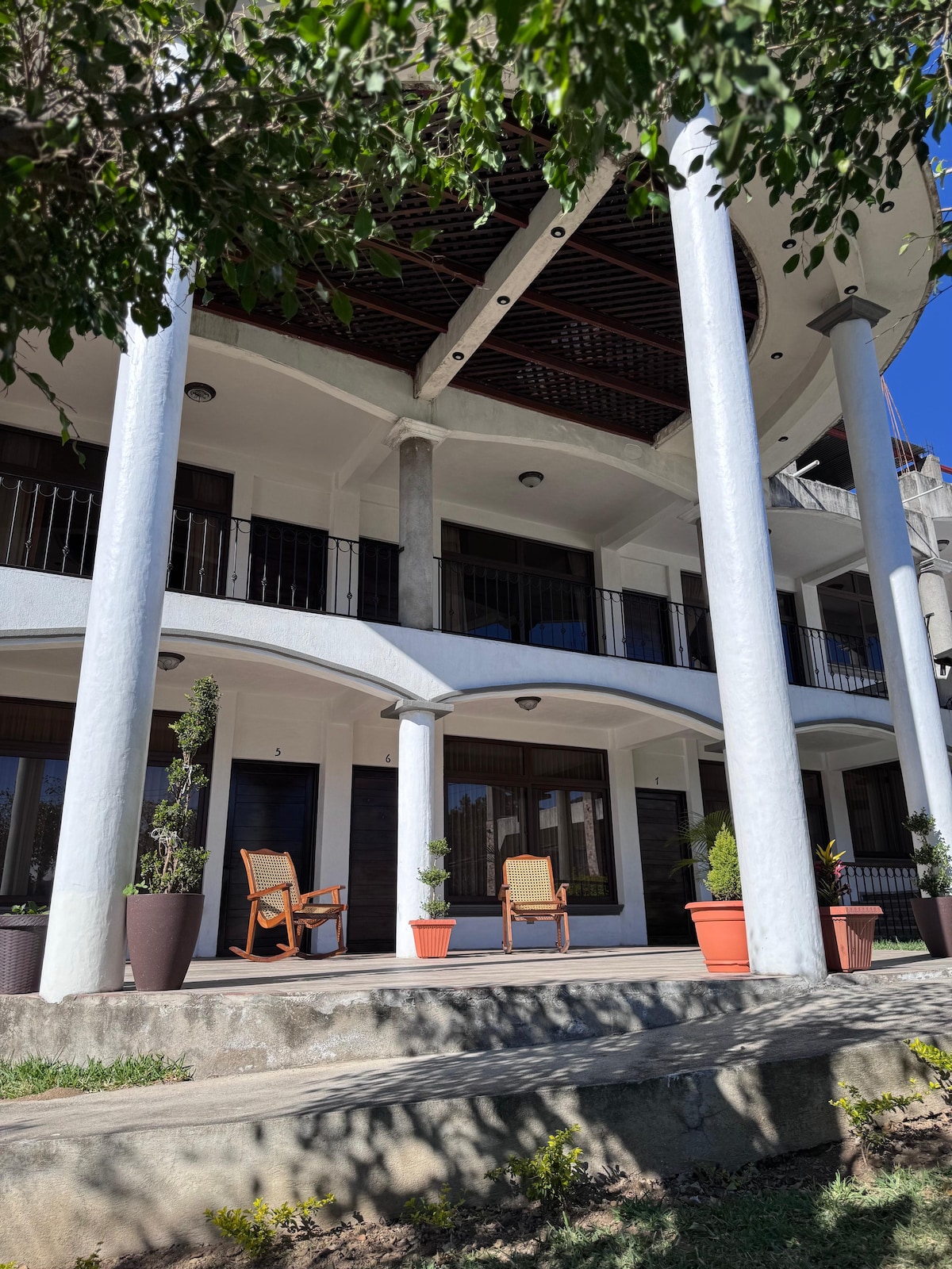 Nuestras 6 habitaciones se construyeron en una antigua finca de café al centro de Panajachel. Estamos rodeados paz, árboles nativos, jardines, aves endémicas y mascotas. Los servicios de nuestras habitaciones son: baño privado con agua caliente, T.V por cable, wi-fi, parqueo y un cómodo porche. También contamos con una cocina comunal y una pérgola como áreas sociales. Nuestra ubicación céntrica te da fácil acceso a supermercados, restaurantes, cafés, bares y los lugares más populares.