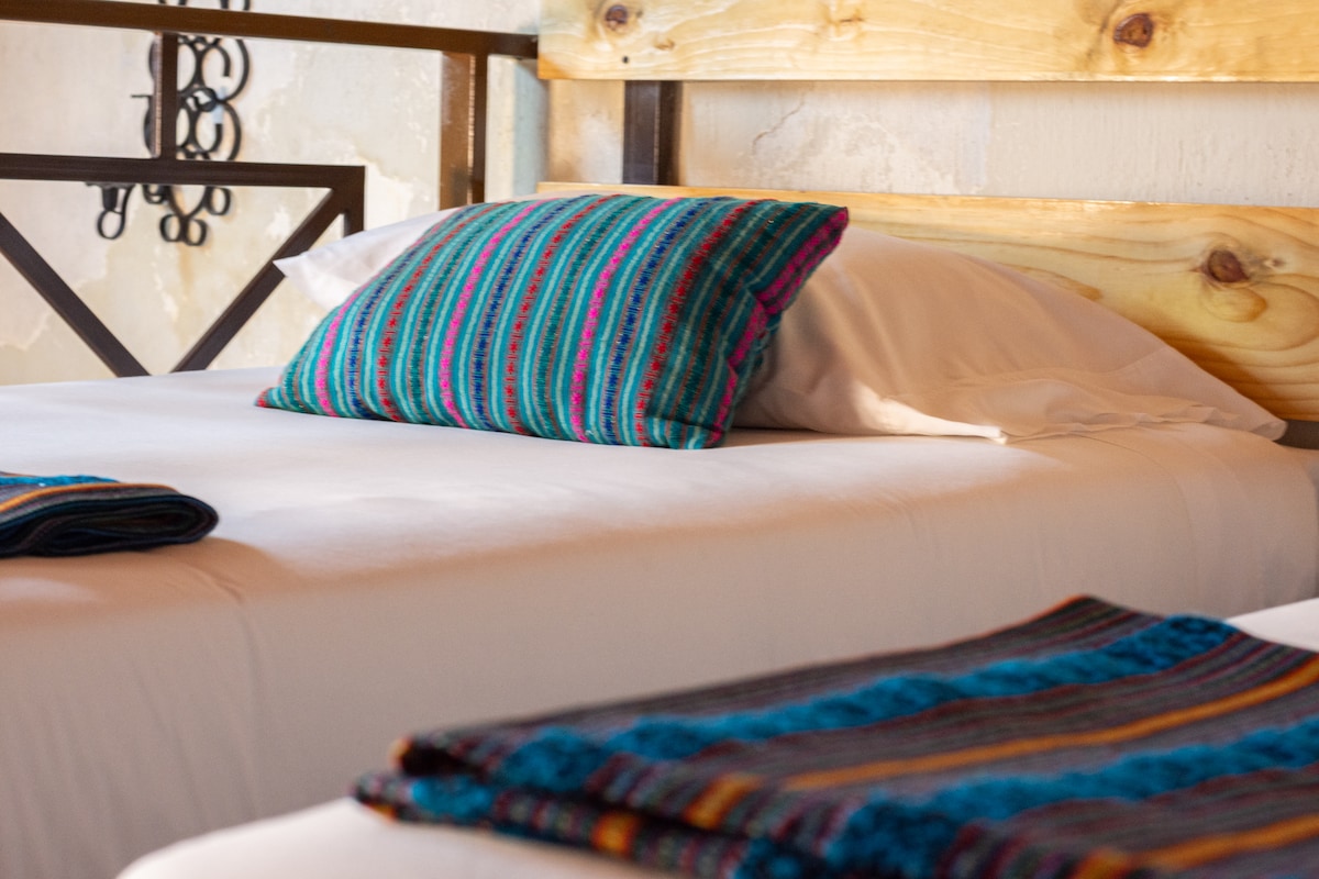 Hospédate en una amplia habitación con dos camas matrimoniales, ideal para 2 a 4 personas. Incluye desayuno gratuito en el rooftop con espectaculares vistas al lago y volcanes. Disfruta de atención 24 hrs, recepción dedicada y espacios modernos diseñados para tu comodidad. La habitación cuenta con cafetera con café y té, agua de cortesía, secadora y baño privado. Perfecta para familias o grupos que buscan confort y una experiencia única en Panajachel.