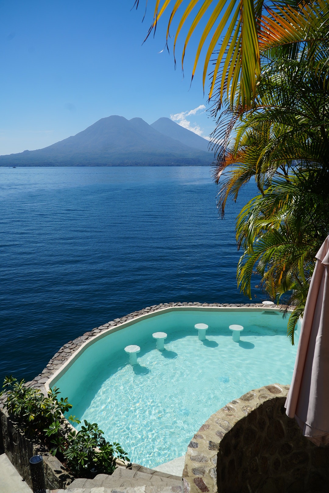 Located on the outskirts of Panajachel but worlds away from the hustle and bustle, this brand new, one-of-a-kind, two-story loft will wow you with its panoramic, 180-degree views of Lake Atitlan and surrounding villages. Soak in the views from almost every corner of this property – including the hot tub situated on a private terrace complete with large retractable umbrella and teak table and chair set. The upper level of the loft has a spacious balcony with oversized hammock & Acapulco chairs, living room, dining room and fully-equipped kitchen. On the lower level of the loft, you’ll find two bedrooms that are separated by a family room. The front bedroom has two twin beds (that can be combined to make a king-size bed) and ceiling to floor windows. The rear bedroom has a queen-size bed. The lower level of the loft also has a roomy bathroom, complete with rain head shower and plenty of hot water. The nearby villages of Panajachel and Santa Catarina Palopo can be reached on foot in about 15 to 20 minutes, or by tuk-tuk (three-wheeled moto taxi) in about five minutes. Other amenities include: • High-speed Wi-Fi • Smart TV with Netflix • Complimentary coffee, potable water in 5 gal jug, olive oil, paper towels are all included • Complimentary multi-lingual concierge service to arrange a variety of amenities including: ground transportation, lake tours in private boat (with or without bilingual guide), private cook, massage therapist, hiking and mountain biking tours that culminate with a gourmet picnic, shopping service to stock your rental with any beverage or grocery items you would like to find upon arrival. A complete list of amenities will be sent to you upon confirmation of your reservation • Complimentary laundry service This loft can be rented together with the adjoining (mirror image) loft accessed through locking double doors on the balcony. Prices include housekeeping service every third day. Fresh towels, bed linens, etc are available apartment request.