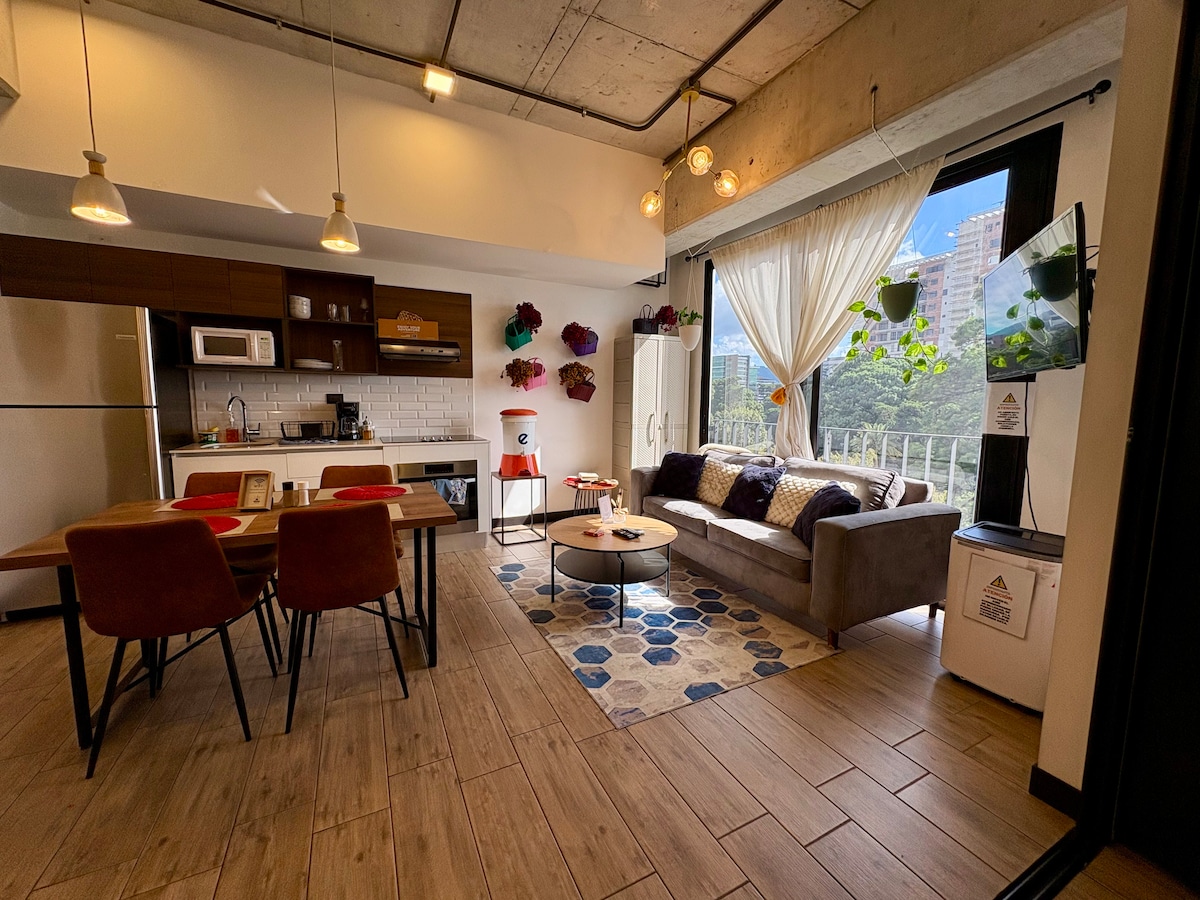 ¡Loft creativo y único en Zona 4 de la Ciudad de Guatemala! -Decoración creativa y colorida -Cocina completamente equipada -Luces LED y áreas para fotografías -Smart TV en la sala y en el dormitorio -Iluminación natural y artificial cálida -Espacio de trabajo para laborar a distancia -Espejo de cuerpo completo -Cama tamaño Full -Extintor y detectores de humo -Minibar con bebidas en venta -Coffee Bar -Agua filtrada ilimitada -Divertidos juegos de mesa -Edificio con muchas comodidades.