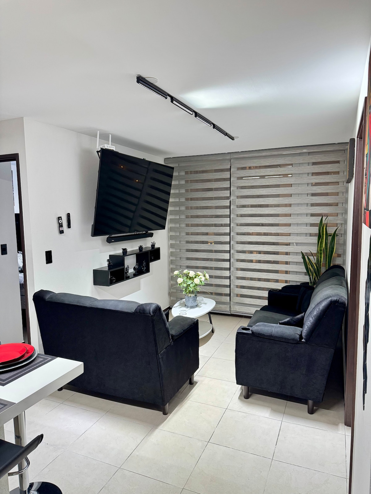 Relájate en este espacio tan tranquilo y elegante. Disfruta de una experiencia con estilo en este alojamiento en la mejor area de la ciudad, a pocos metros del aeropuerto. Con un balcon con jacuzzi y chimenea, nuestra suite de lujo tiene una vista impresionante a la ciudad. Es una muy buena opcion para ti para quedarte, tiene un estilo moderno, area para home office, nunca te aburriras mientras trabajas, conocelo!!
