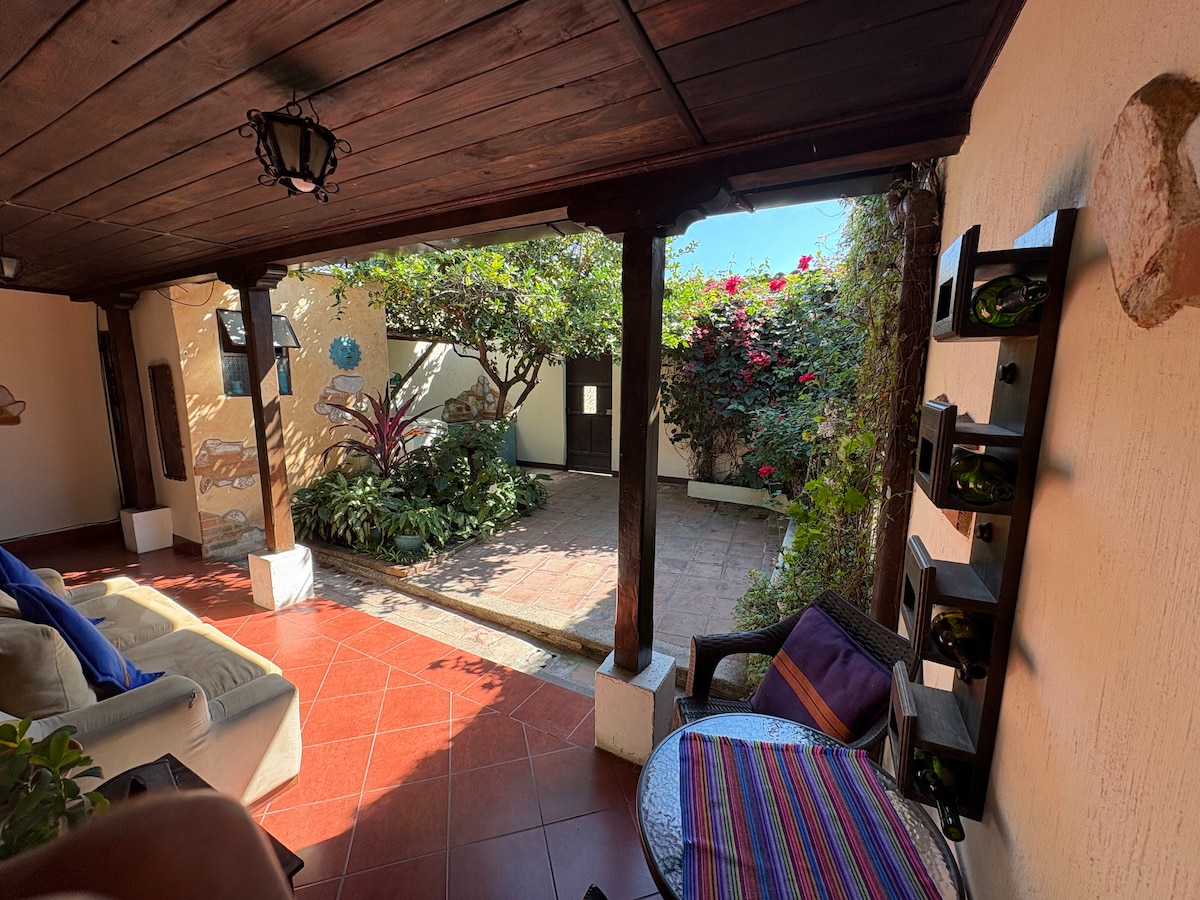 Vive la experiencia de hospedarte en el corazón de La Antigua Guatemala. A solo unas cuadras del parque, recorre estas mágicas calles a pie. Con muchos restaurantes, bares y atrcciones a solamente unos pasos pero lo suficiente como para mantenernos privados del ruido nocturno. Es un espacio acogedor diseñado para 2 personas, con todo lo necesario para estadías largas y cortas en un vecindario precioso y súper seguro. No contamos con parqueo privado y debes de subir unas gradas al llegar.