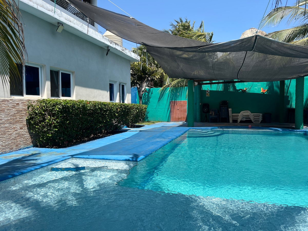 Create unforgettable memories in this unique and family-friendly accommodation, disconnect from the city routine and spend memorable days with your favorite people. You will love this accommodation as it has an excellent location at km 9.5 Monterrico road. It also has a private pool, condominium pools and the seafront. Spacious and comfortable first-floor apartment for 9 people maximum, fully equipped with A/C in each one and in the common room area. Full kitchen.