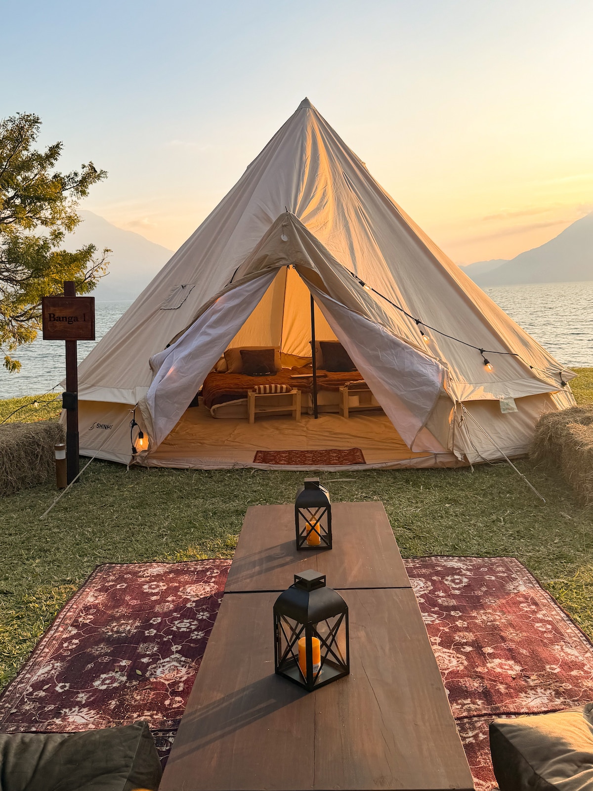 Sleep in a double camping tent surrounded by nature on the shores of Lake Atitlán. A simple and authentic space for travelers seeking calm and connection to the land, with meals included during your stay. The place is completely secluded, with no road access, only reachable by boat. It has solar-powered electricity with batteries and Wi-Fi via Starlink, allowing remote work. No luxury comforts, but silence, stunning views, and a real rural living experience.