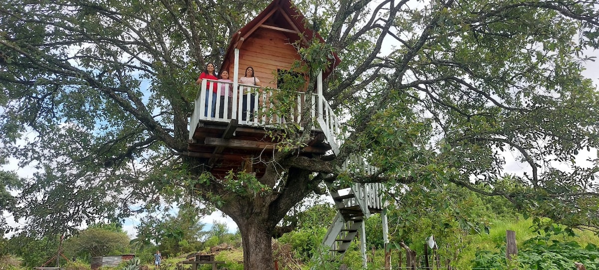 Treehouse on top of an eucalyptus 15 minutes away from Quetzaltenango's central park. The treehouse has a small deck, living room and a second level for sleeping. Place is surrounded by trees and has a garden where you can rest and chill.
