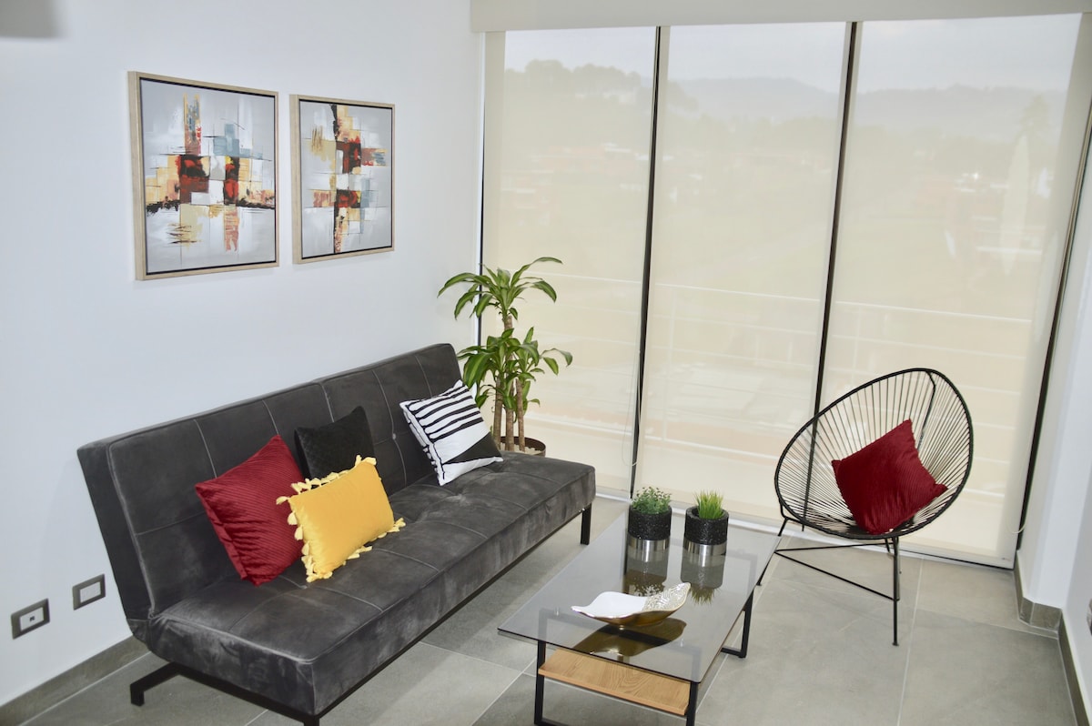 Beautiful 1 Bedroom Apartment in Shift Cayal, hosts up to 4 people. Apartment includes High Speed Internet, A/C, and is fully equipped to give you thhe most comfortable stay. It is located 5 min walk from Cayala, which hosts trendy restaurants, shops, movie theatres, farmacies and grocery stores. It is also 5 min walk from Esplanada Cayala. The building has a gym, yoga room, spa, 2 pools, dedicated work areas, wine cellar among other amenities that you can enjoy during your stay.