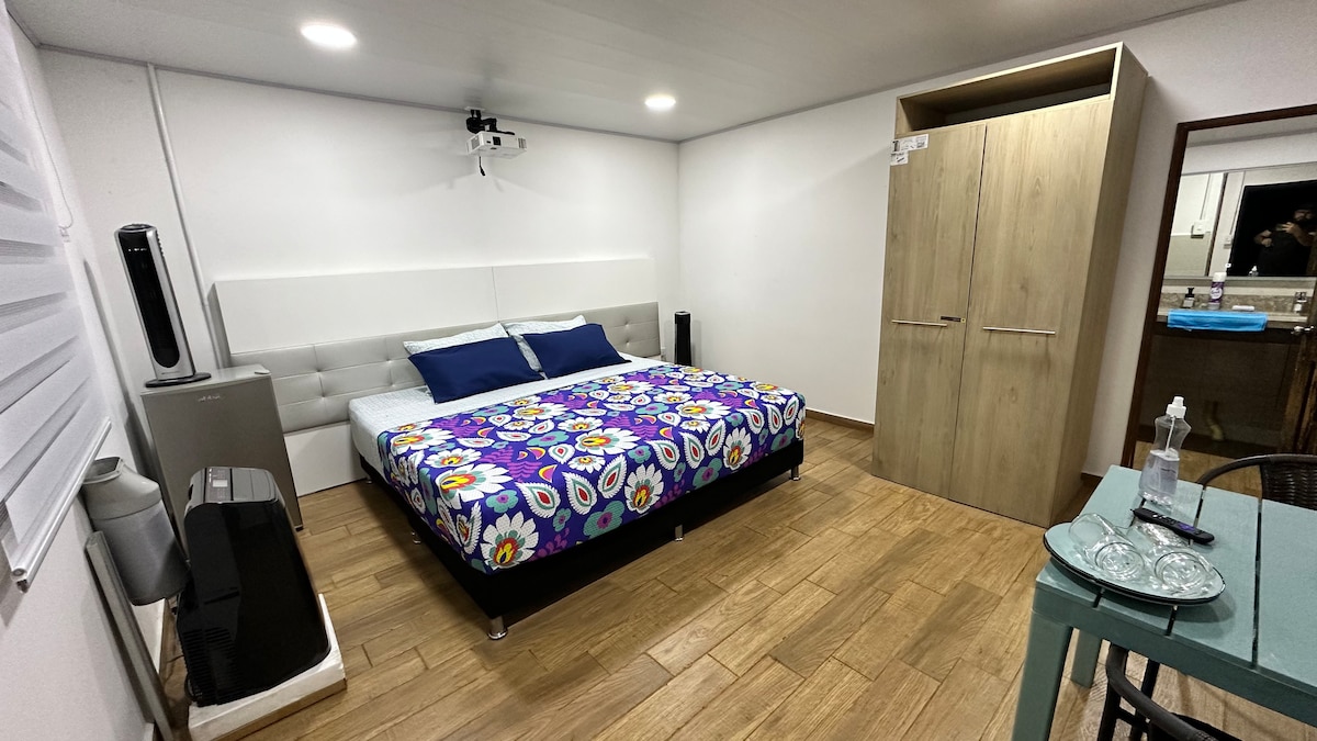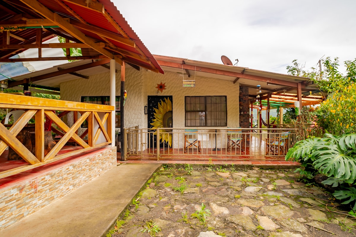 Pongo a tu disposición una linda Casa independiente con acceso a kiosko con asador, terraza con parasol, área de fogata, espacios para acampar, pequeño bosque de 1.000 mt2 con acceso a quebrada privada. Muchos árboles, pájaros y vida silvestre. La casa es confortable y muy bien dotada. Cuenta con una habitación con cama doble y baño, área social con sofacama, cocina con estufa, horno eléctrico, nevera, vajilla, utensilios de mesa y cocina completos. Lavadero exterior. Wifi, parqueo.