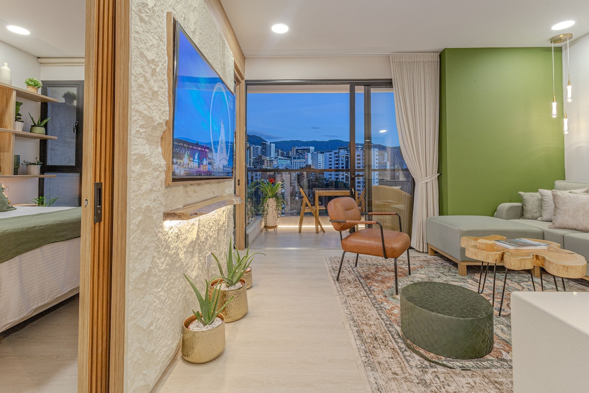 Relax in this elegant, modern apartment in the heart of Manila – El Poblado, just minutes from Provenza, Parque Lleras, and top medical centers such as Clínica Medellín, Clínica Las Vegas, and Clínica El Rosario. ✔Enjoy a king-size bed with premium linens, ✔Stylish bathroom with walk-in shower, ✔Smart TV, ✔High-speed fiber Wi-Fi ✔Fully equipped kitchen. ✔ Private balcony ✔Air Conditioning ✔ Hot Water ✨Perfect for short stays, business trips, or recovery stays.