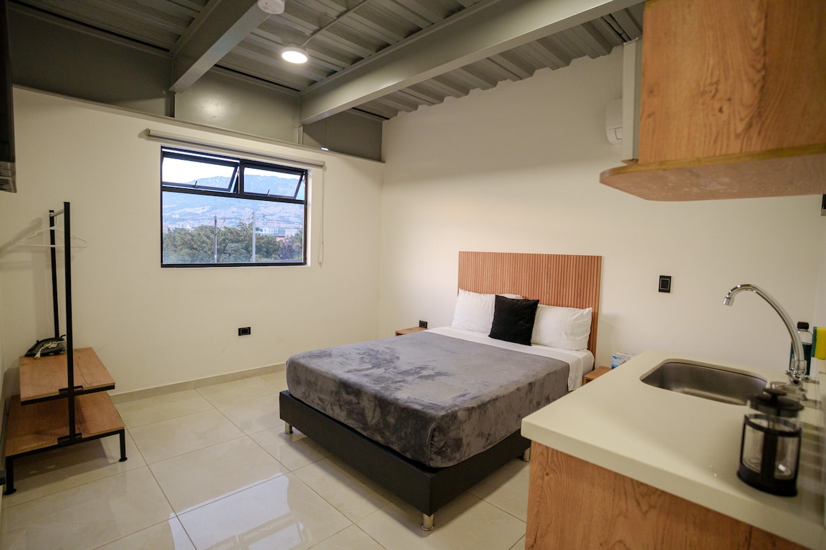 Buen espacio para 1 persona o pareja. - Ubicado en la zona MÁS TURÍSTICA de Boston: cerca a parque Bicentenario, Museo de la Memoria, Tranvía Ayacucho, etc. - 20 minutos del Poblado y 22 de Laureles. - Zona segura y con todo muy cerca: Restaurantes, supermercados, cafés, parques. Apps domicilio 24 horas - Jacuzzi en terraza - WiFi - Parqueadero gratis privado - Smart TV con cable, Netflix y más apps para que accedas a tus cuentas - DESAYUNO para huéspedes registrados entre 7-9:30am en la terraza